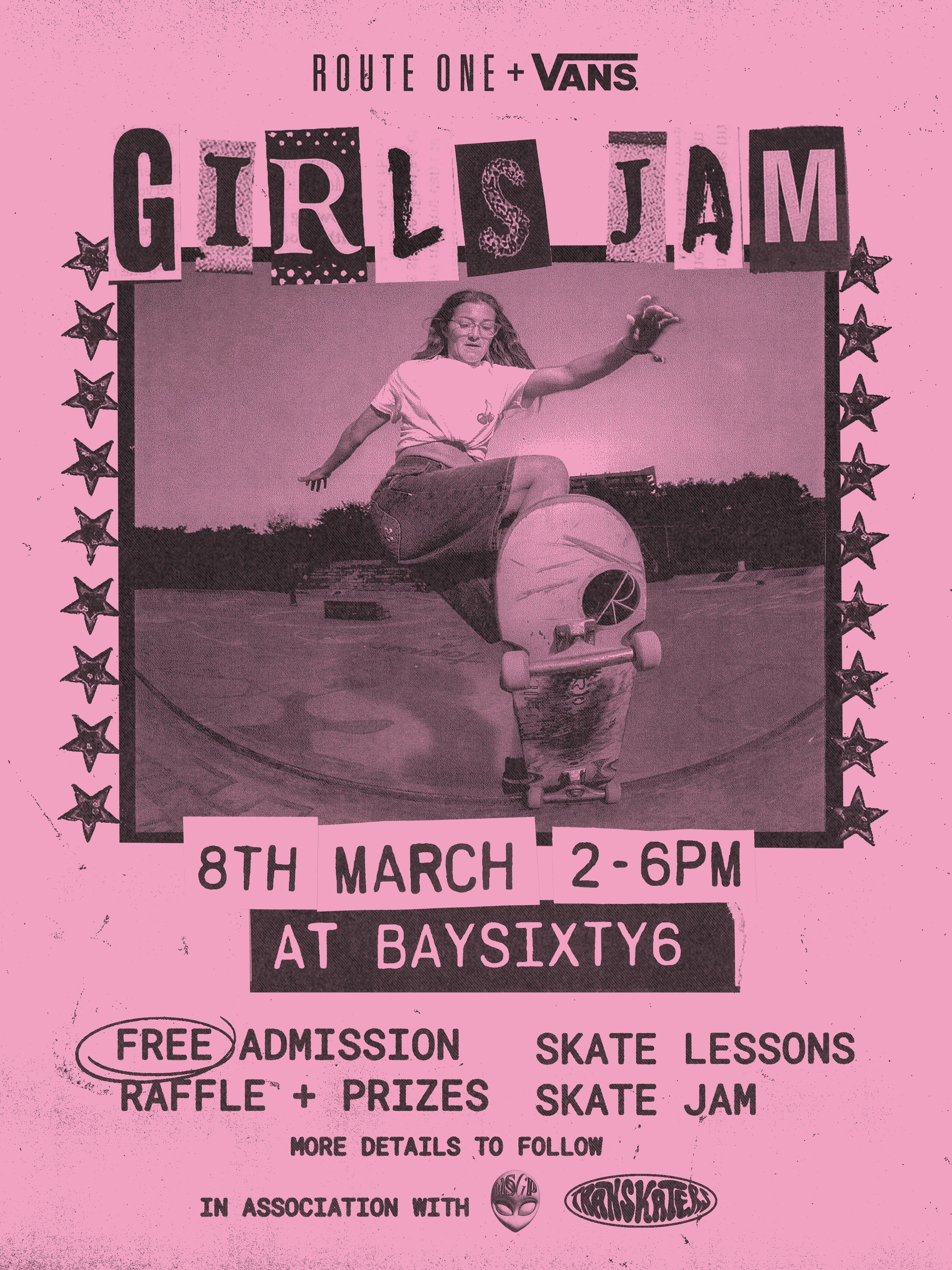 GIRLS JAM! Free admission for all women to Bay Sixty 6 in celebration of International Women’s Day 2026 on Sunday 8th March, in association with Vans Skate.