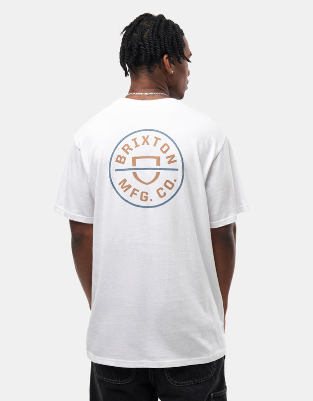 Brixton Crest II T-Shirt - White/Light Brown/Slate