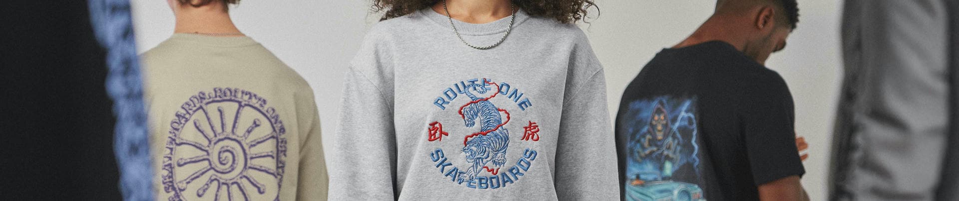 Layer up with our super comfy Route One sweatshirts. You'll find some great graphic prints, plus some of our fave 1/4 zip sweatshirts in block colo...