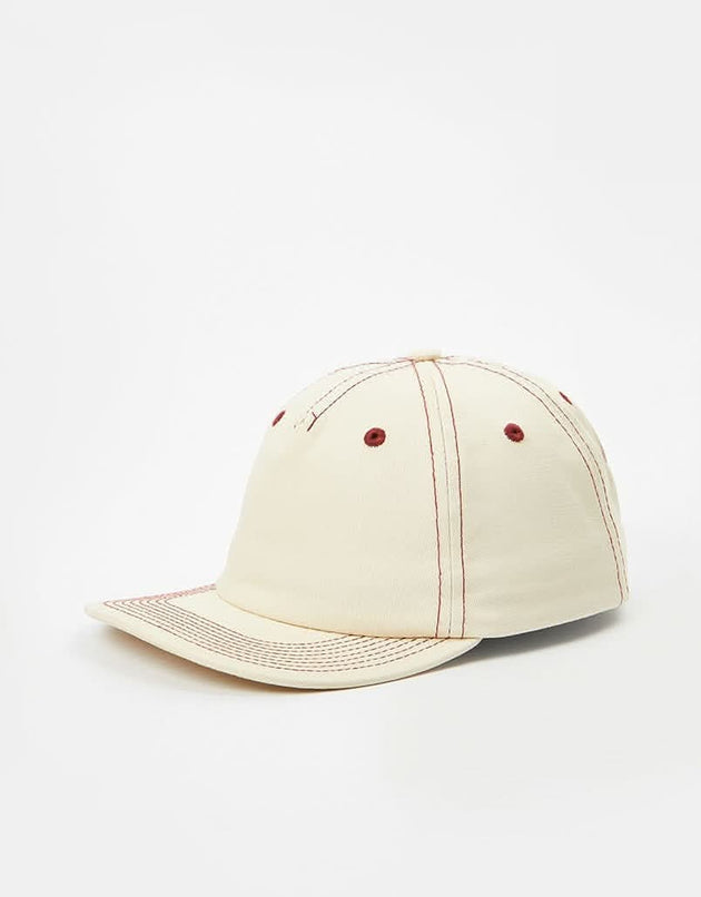 Route One Unstructured Contrast Stitch Strapback Cap - Natural/Burgundy