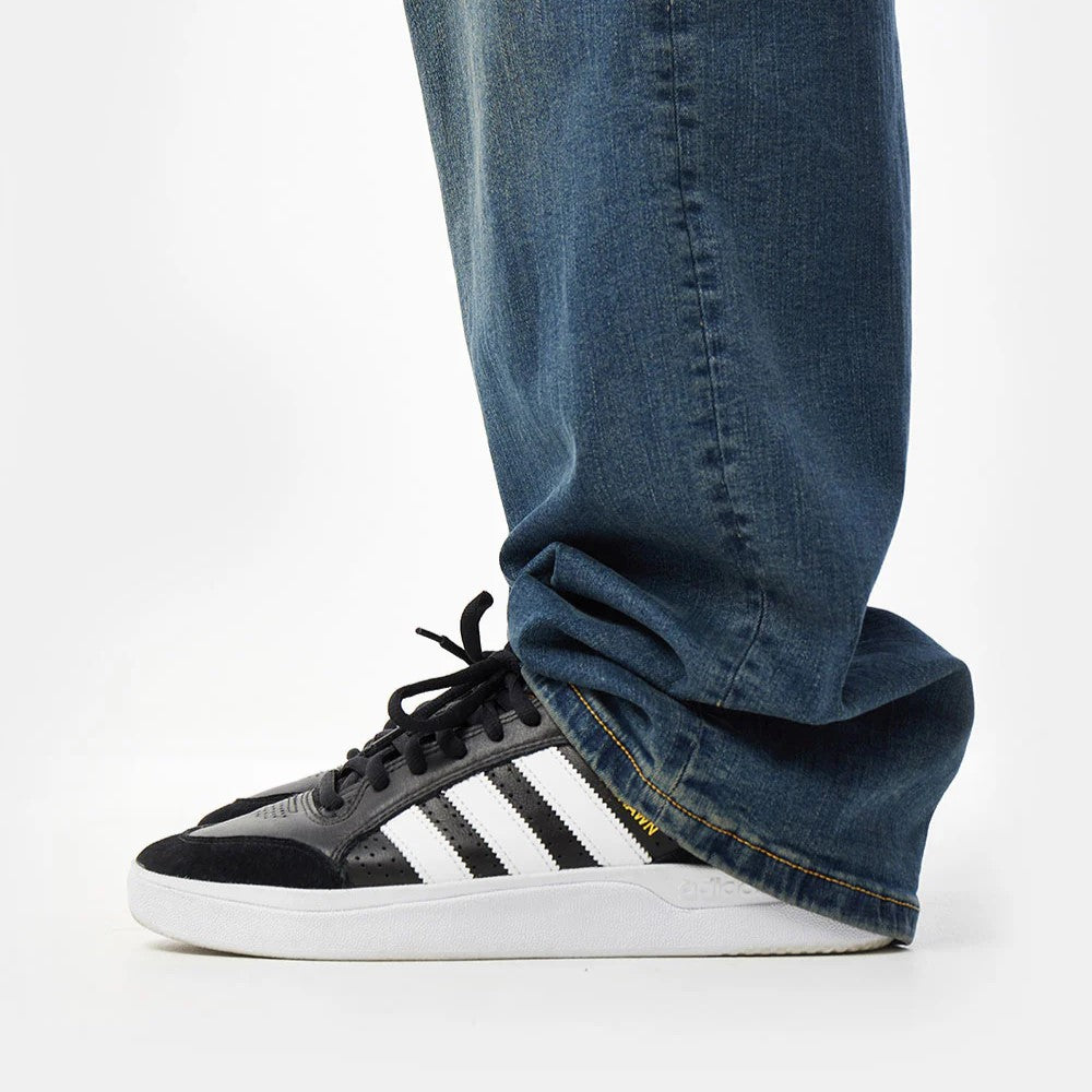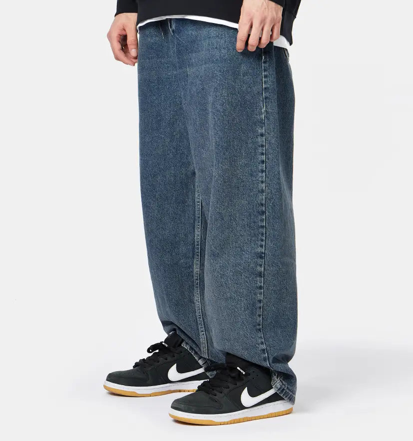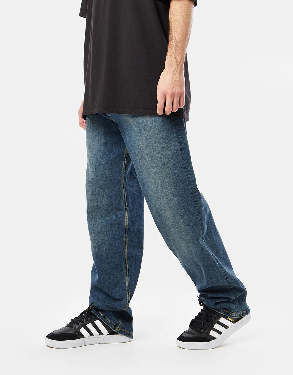 With a regular rise, our generously sized ‘Baggy’ denim has a wide leg offering a loose fit with room to move. Constructed from 12oz denim with 2% elastane, it provides the perfect blend of durability and mobility required when skateboarding. Available in a standard leg 32” and available in our multiple signature washes.  It has a 5 pocket design, with YKK zippers, branded button waist fastening and flat rivet details.
