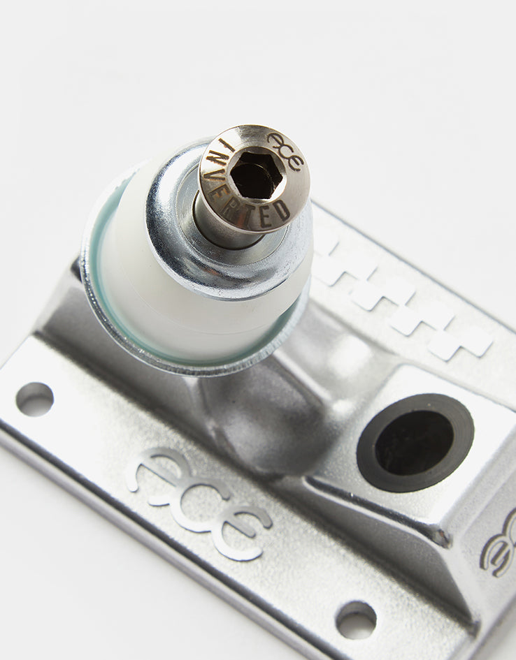 ACE introduces their latest innovation: the AF1 Inverted Truck Baseplate. A  a revolutionary inverted kingpin system, engineered for maximum durability, unrivaled performance, precision tuning and guaranteed lowest grind clearance of any kingpin on the market. At the heart of their design is a patent pending technology providing a more stable anchor point for the kingpin. Their innovative hollowed axle system and domed-out baseplate make it the strongest and lightest truck they've ever created. These Inverted Baseplates are compatible with all AF1 and Classic Hangers. Use your existing Ace hanger, or purchase a new hanger of choice to complete your custom set of Ace Inverted.