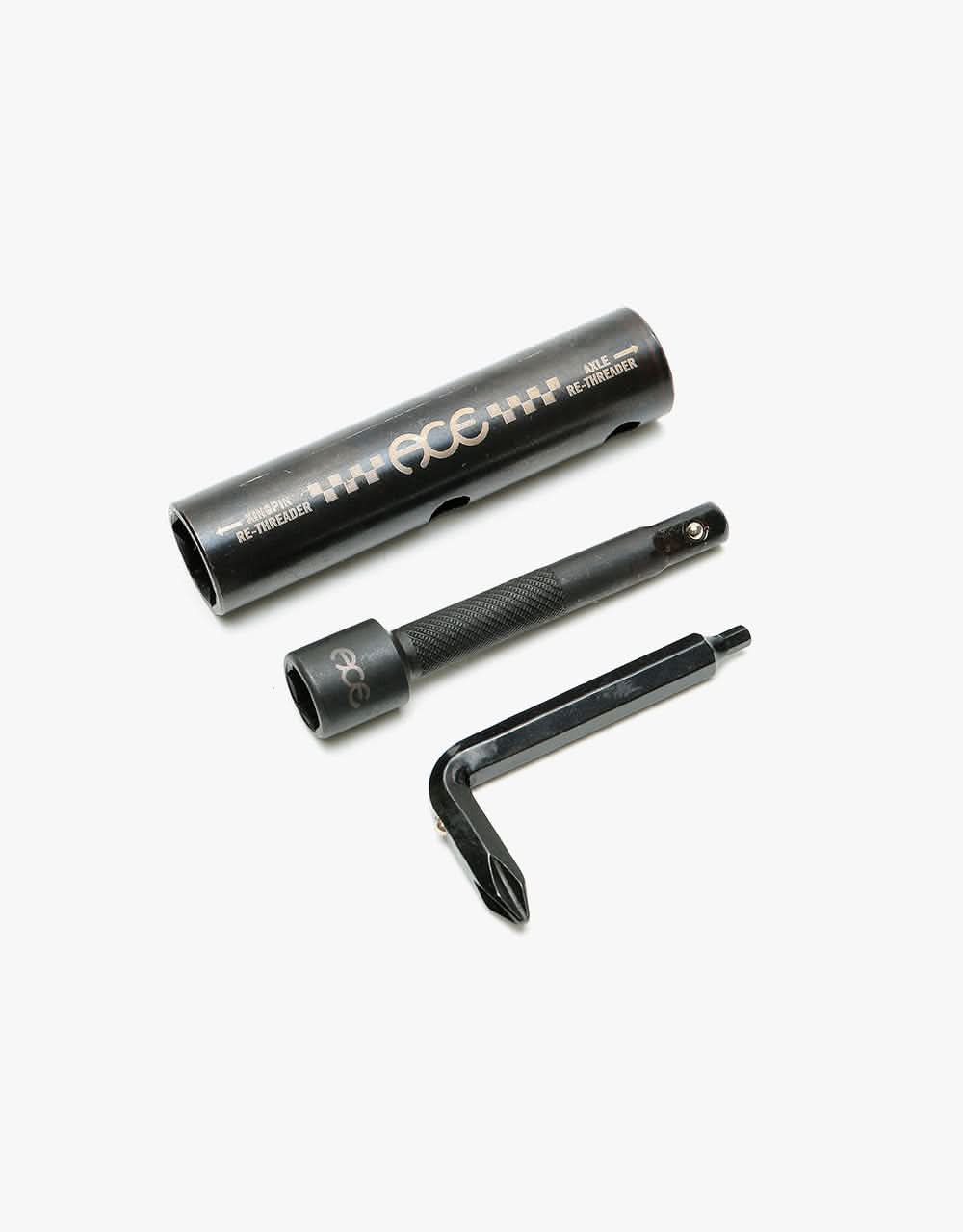 The Ace AF1 skate tool is a classic T tool design but with the ability to be broken down into a mini tool that can fit easily in a backpack or pocket. This tool also includes an internal axle and kingpin rethreaders.
