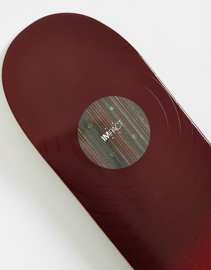 Tyson Bowerbank's Rings Impact Support Deck from Almost has a clean and simple gradient aesthetic, with exposed woodgrain veneer around the mounting holes to expose the carbon fibre Impact Support construction designed to decrease weight and bolster durability.