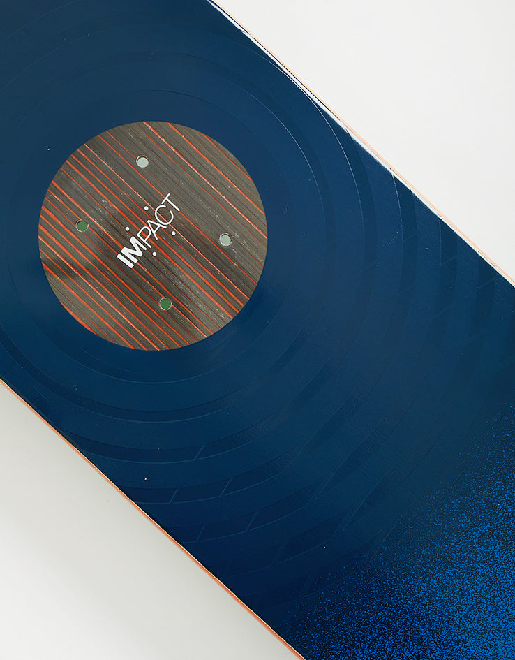 Max Geronzi's Rings Impact Support Deck from Almost has a clean and simple gradient aesthetic, with exposed woodgrain veneer around the mounting holes to expose the carbon fibre Impact Support construction designed to decrease weight and bolster durability.