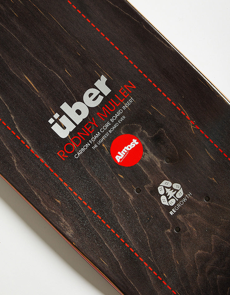 The Almost Mullen Über Elite Skateboard Deck is a pro model for Rodney Mullen coming in at 8.25" wide. The deck has Uber Light Technology Construction and internal carbon-fiber foam insert to reduce weight compared to any other construction.
