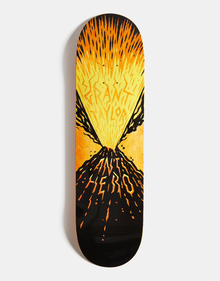 The Anti Hero Grant DBX 'DLX BASALT CONSTRUCTION' Skateboard Deck is a pro model for Grant Taylor coming in at 8.38" wide on their brand new Basalt construction. Utilising Basalt (“what, the volcanic rock?!” I hear you ask. You betcha.) the DBX decks feature three super strong layers of the stuff, sandwiched in between layers of standard ply and two thinner face veneers. Designed to not only strengthen the deck, but improve response, feel, pop and the overall lasting performance of your board. Coming with a fitting erupting volcano graphic.