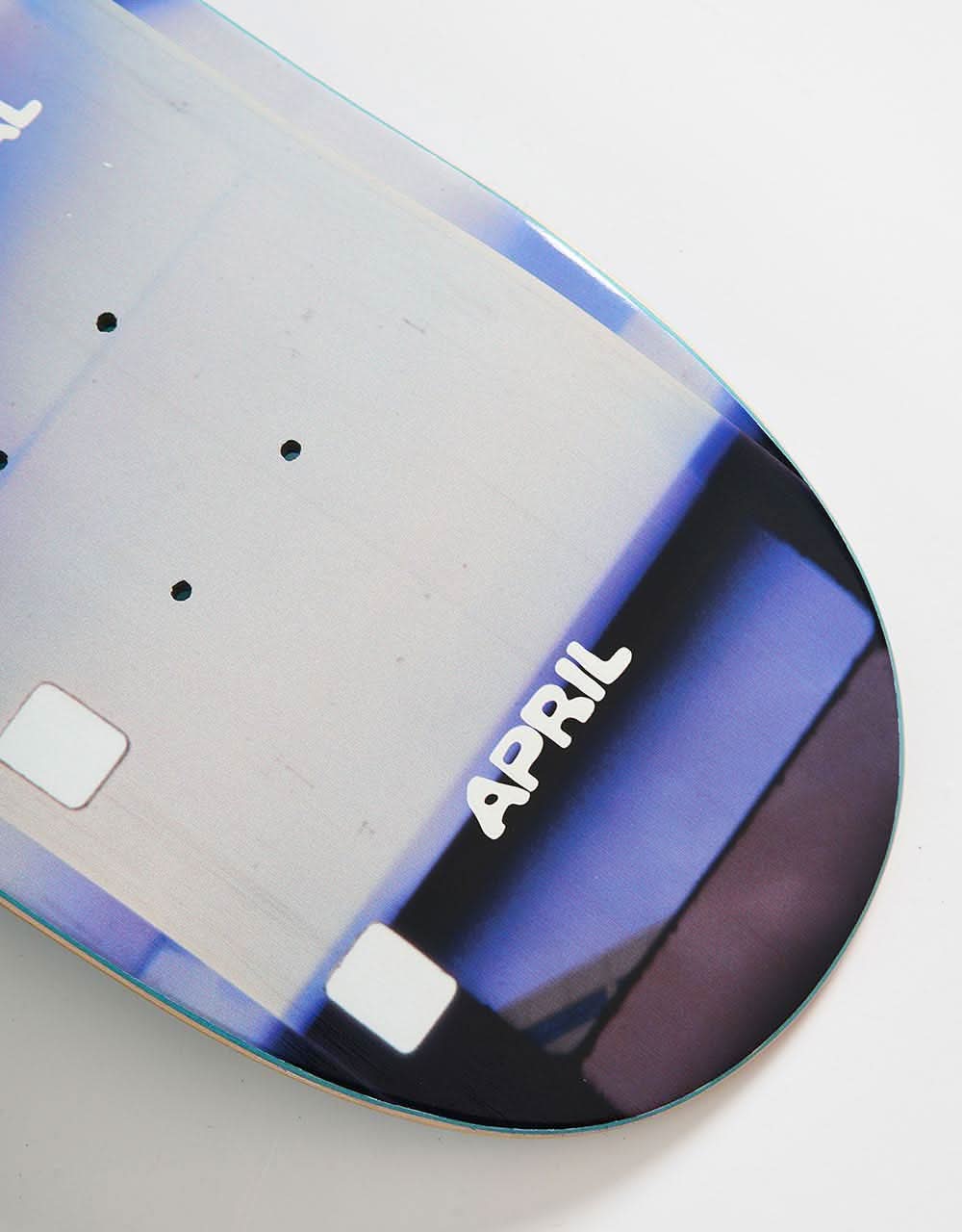 showcase their latest deck collection. The April Rayssa 2023 Skateboard Deck is a pro model for Rayssa Leal with a photo of Rayssa by Chris Middlebrook in the centre, whilst the rest of the deck features a flickering distorted camera roll graphic. Embossed April branding and Leal's name sit on the lower half of the board.