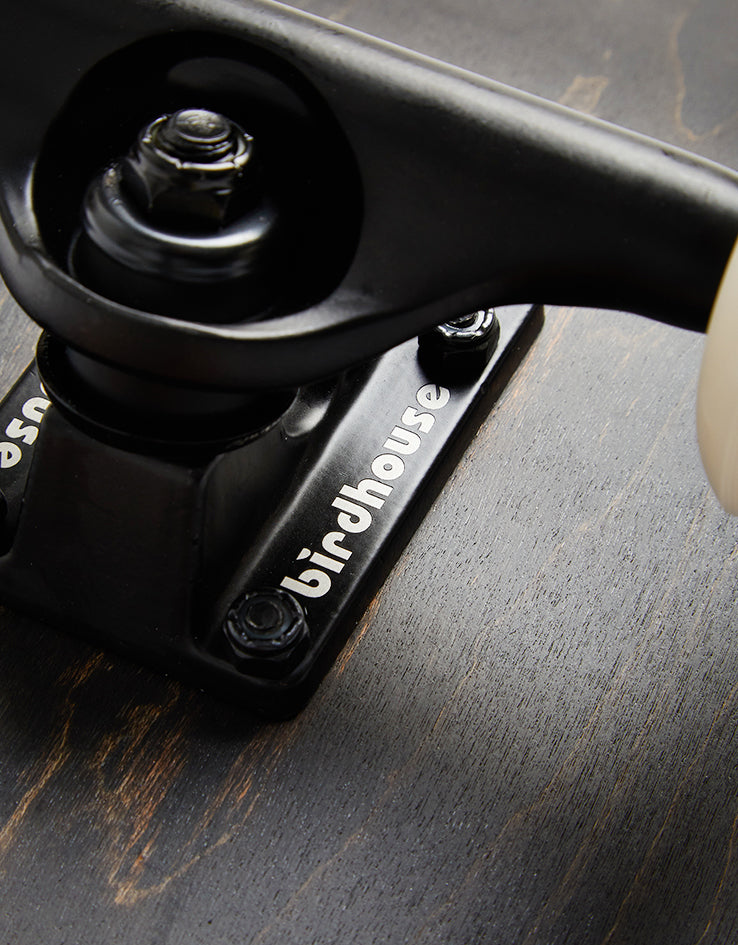 The Sunset Stage 3 Complete Skateboard from Tony Hawk's Birdhouse comes pre-built and ready to rip, equipped with 5.25 powder coated black Birdhouse trucks and 52mm Birdhouse wheels with a 100a hardness for slide when you need it. Crafted with a 7-ply Canadian Maple construction, the Sunset Stage 3 is strong, poppy, and features a clean graphic - the perfect way to get rolling.