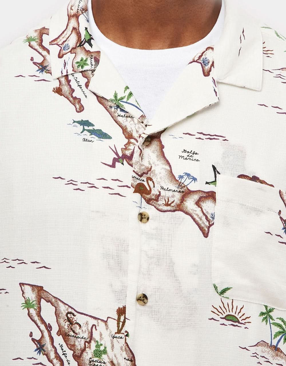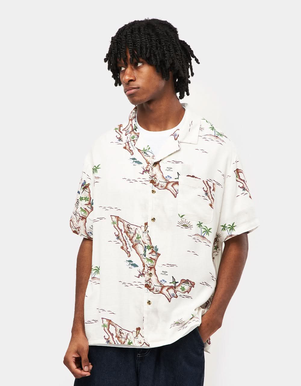 Brixton Bunker Slub S/S Woven Shirt - Off White/Map