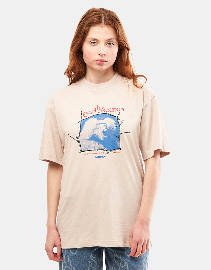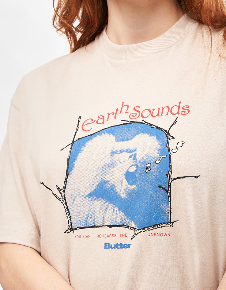 Upgrade your wardrobe with the Butter Goods Earth Sounds T-Shirt in Sand, an essential skate addition to any outfit. This Butter Goods T-Shirt is composed of 100% cotton, styled in a relaxed fit, and features screen printed graphics on the front chest, making it a must-have for skater enthusiasts.