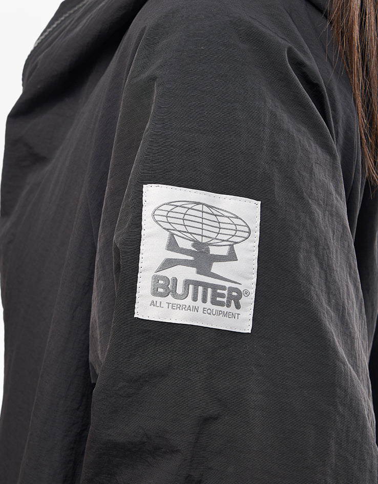 Upgrade your wardrobe with the Butter Goods Equipment Anorak in Black, an essential addition to any outfit by our favourite skate brand from across the pond. This stylish jacket, composed of 100% nylon, features a relaxed fit, perfect for skaters, with a 1/4 zip closure and elasticated cuffs, making it a must-have for any skate hoodie collection.