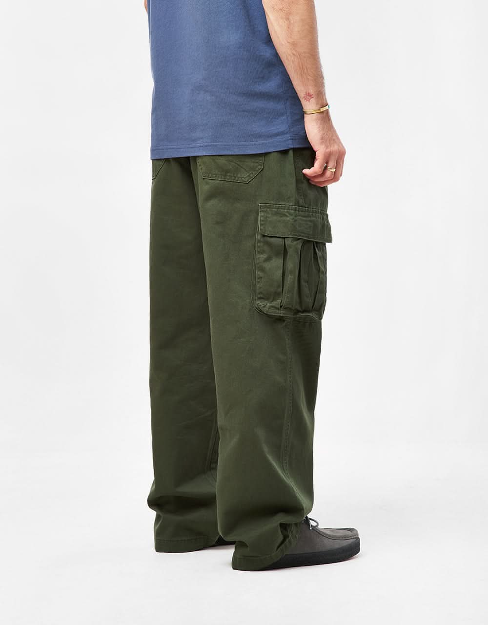 Discover the latest Butter Goods collection featuring the stylish Butter Goods Field Cargo Pant in forest green. These baggy cargo pants are made from 100% cotton, ensuring comfort and durability. With a unique distressed wash, the cargos include 3D flap cargo pockets on both sides and patch pockets on the back adorned with a woven label. For the perfect fit, these Butter Goods trousers come with an adjustable drawcord at the leg opening and belt loops with an internal drawcord on the waist.