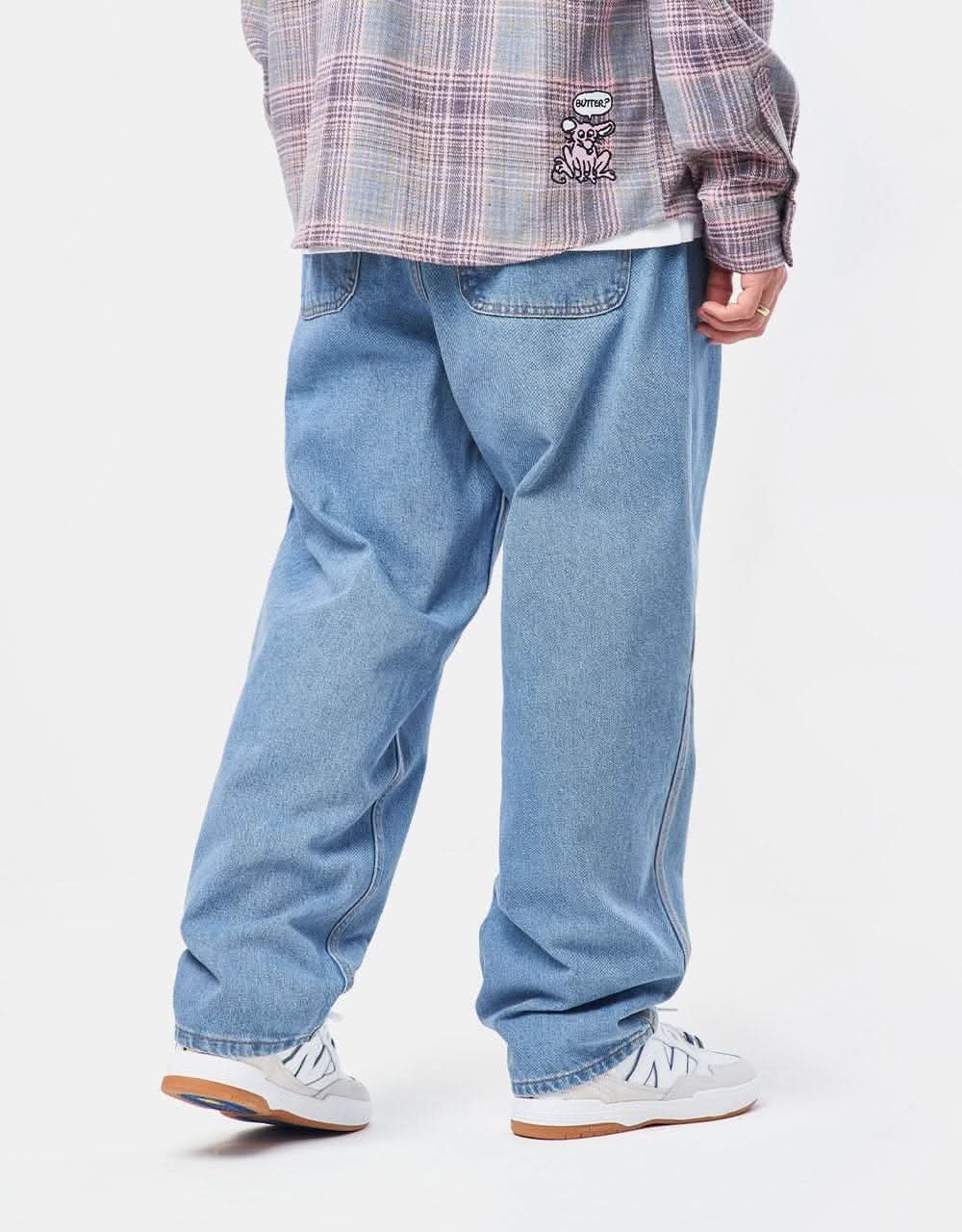 Butter Goods take on the classic baggy jean, the Santosuosso Denim Jean has a slightly-looser-than-relaxed cut, making it a perfect choice for skater jeans enthusiasts. Crafted with 100% cotton, these baggy jeans offer a soft and comfortable yet durable construction, ready-prepped for any daily activity or street mission. An integrated drawcord at the waistband ensures a perfect fit, while their traditional 5 pocket construction, including an embroidered coin pocket, provides ample storage space for your daily necessities.