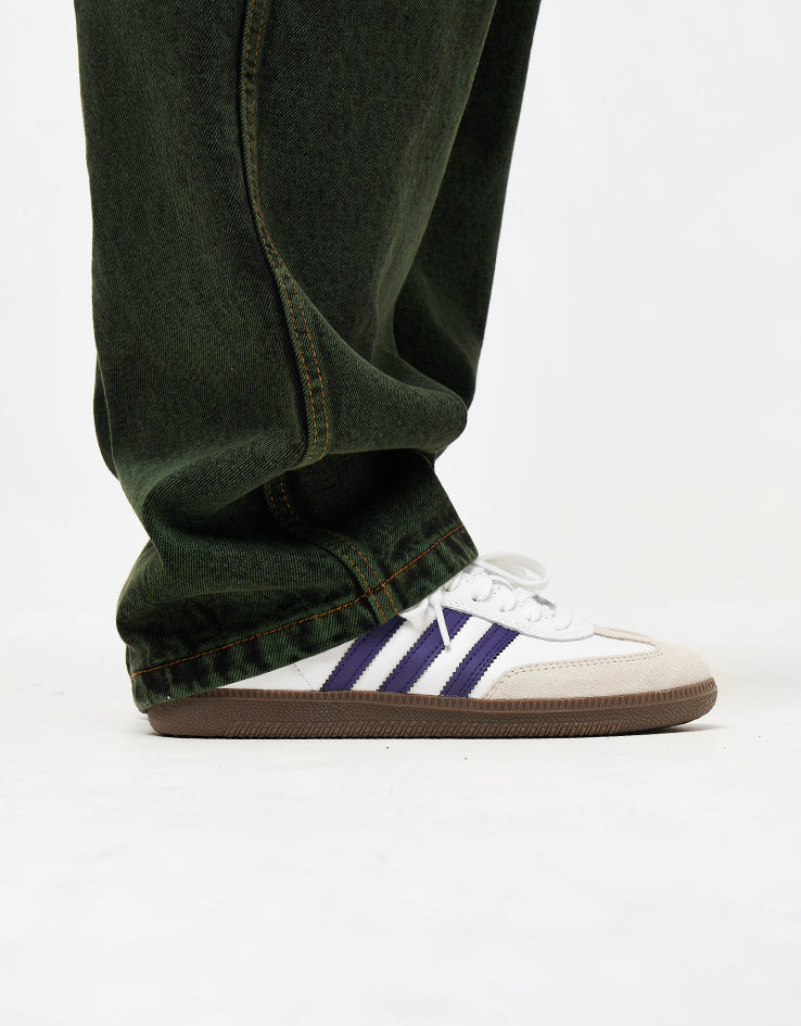 Upgrade your wardrobe with the Butter Goods Santosuosso Denim Jeans in Dark Green, an essential addition to any outfit by our favourite skate brand from across the pond. These Butter Goods jeans are composed of 100% cotton, styled in a baggy fit perfect for skaters, and feature cargo pocket details that enhance both style and functionality.