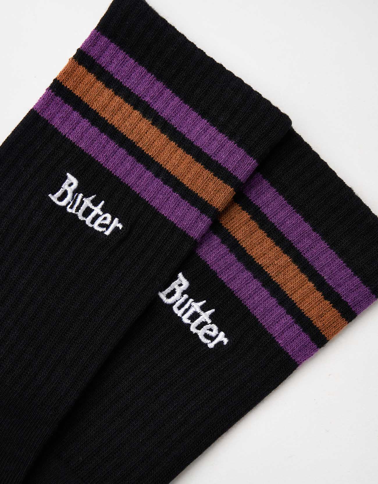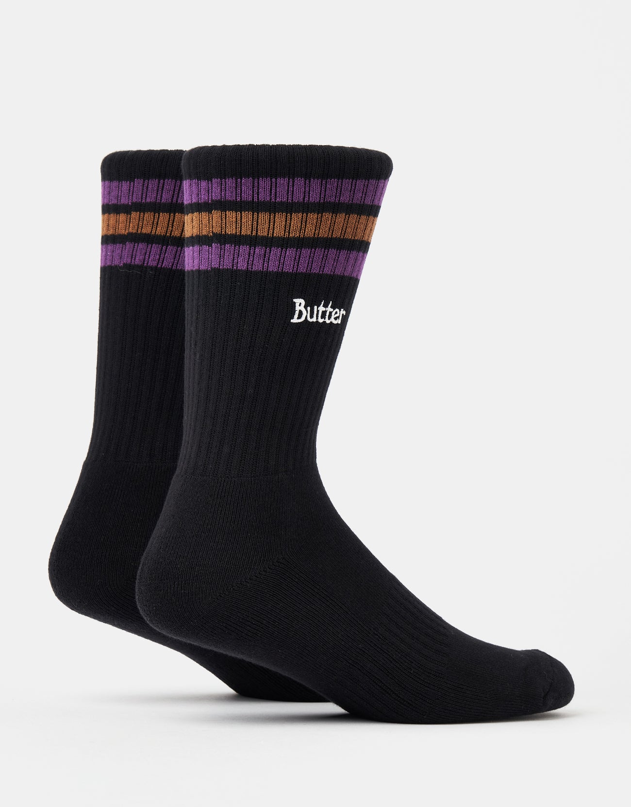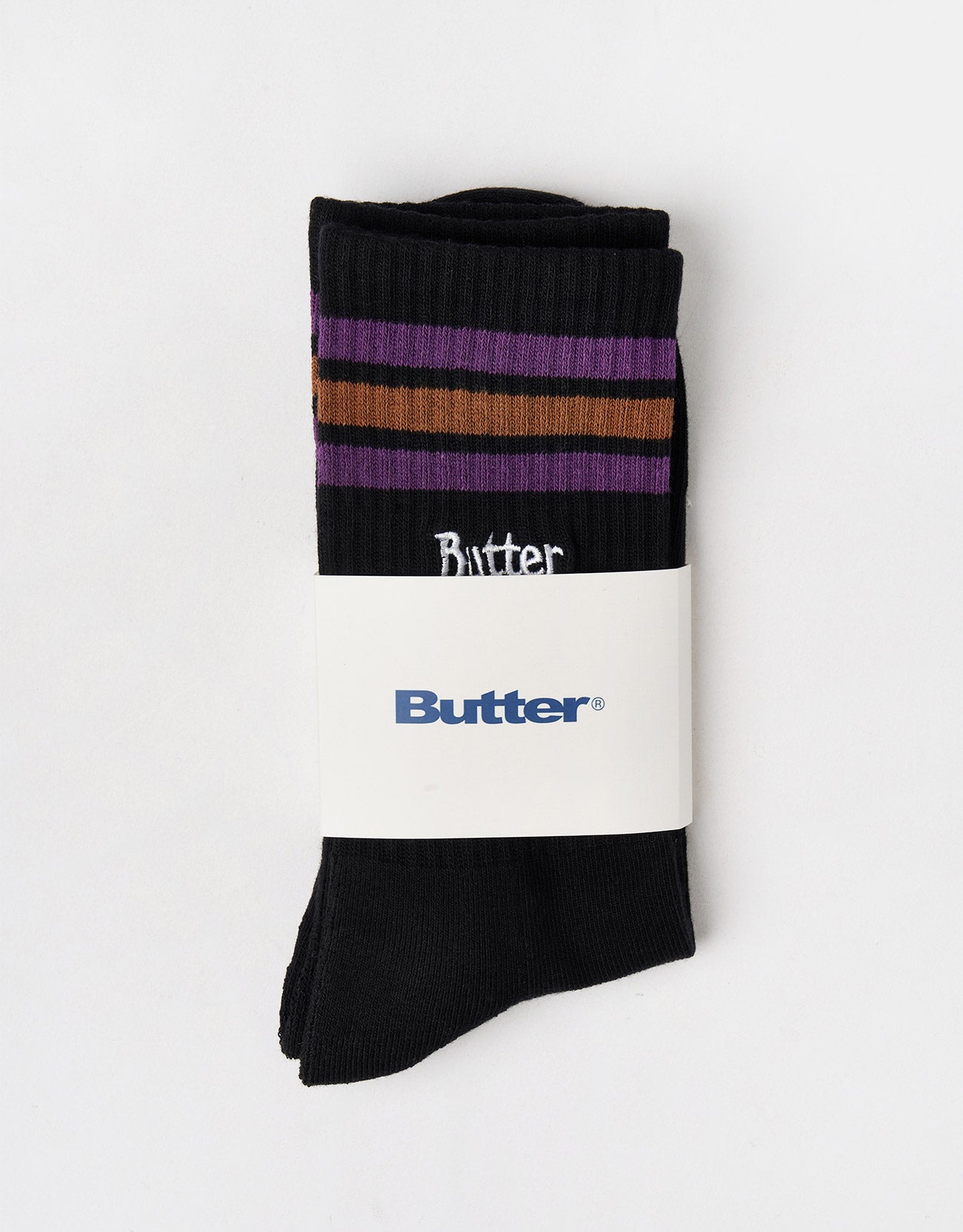 Elevate your sock game with the Butter Goods Stripe Crew Socks in Black. These crew socks are crafted from a soft, durable blend, providing ultimate comfort and support for all-day wear. Featuring a stylish striped design, they effortlessly combine fashion and functionality, making them perfect skate socks for casual outings or adding a pop of style to your outfit. These Butter Goods socks are a must-have for any wardrobe.