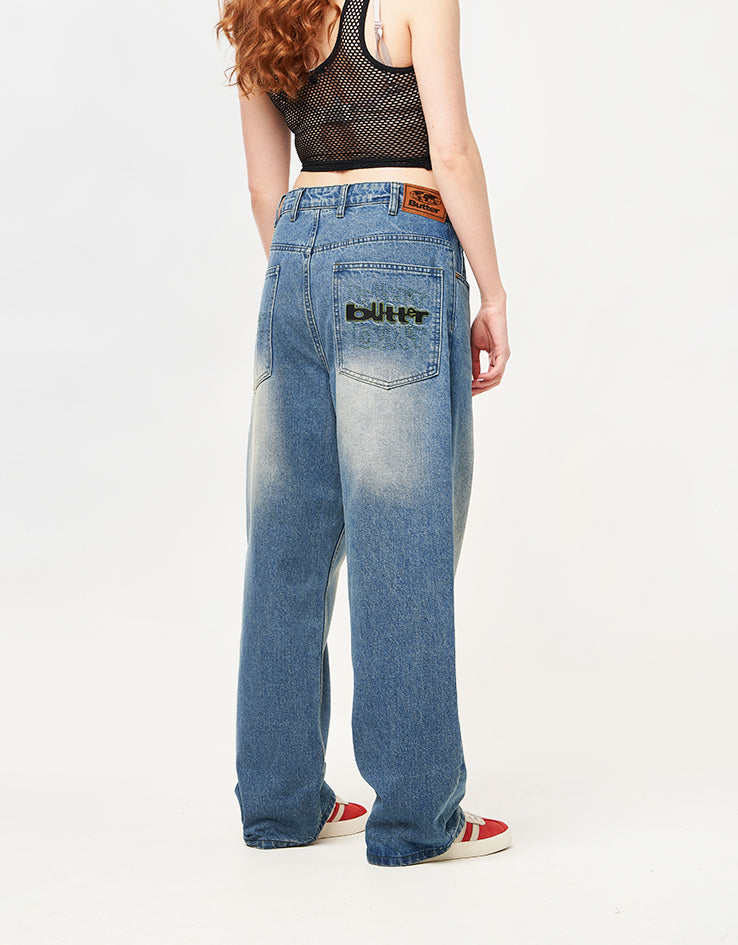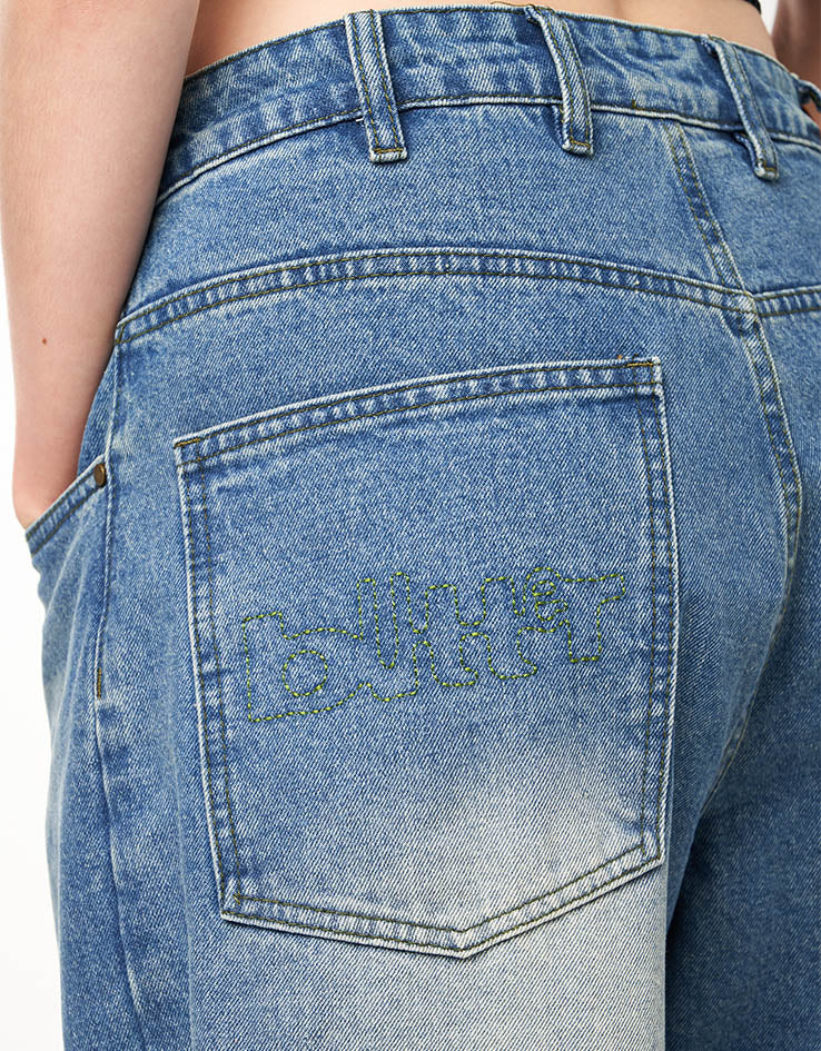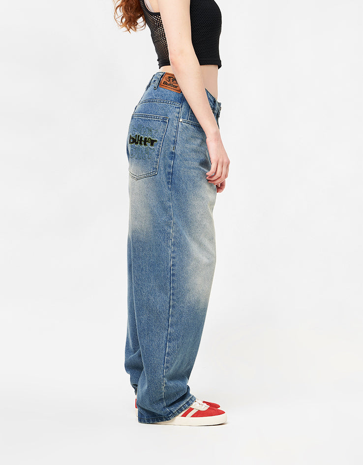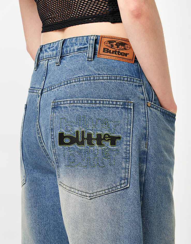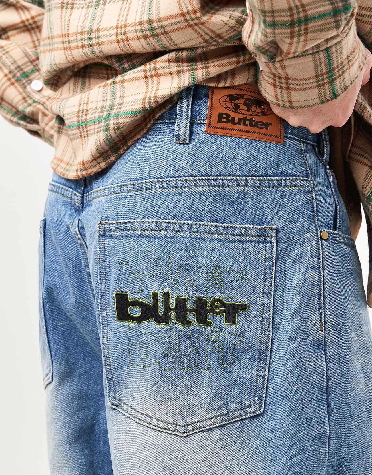 Upgrade your wardrobe with the Butter Goods Warped Denim Jeans in Washed Mid Blue, an essential addition to any outfit by our favourite skate brand from across the pond. These Butter Goods jeans are composed of 100% cotton, styled in a baggy fit perfect for skaters, and feature unique embroidered details that elevate your look.