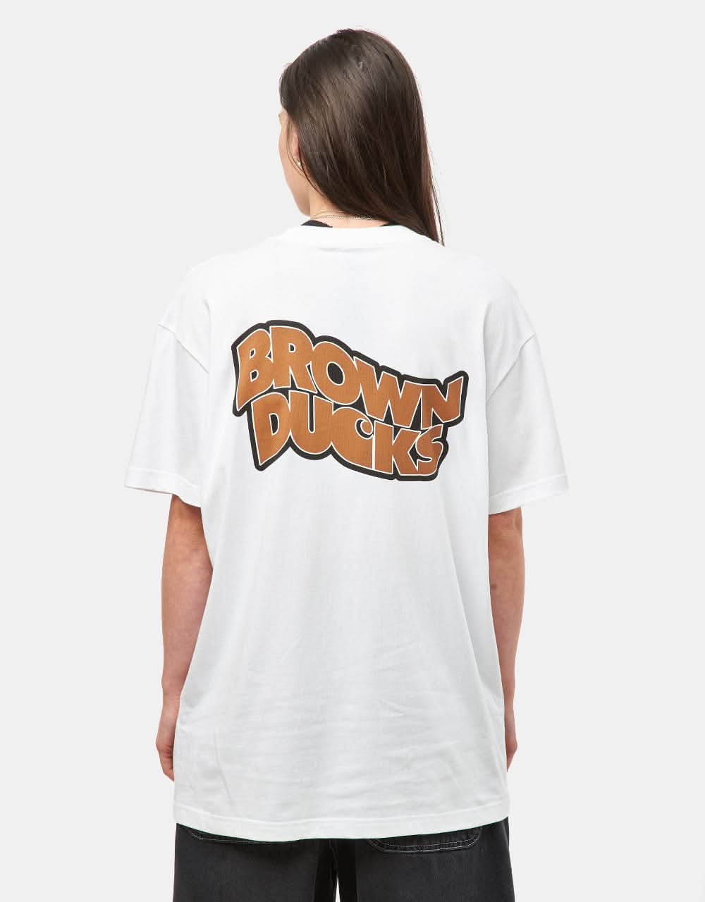 If we're talking streetwear essentials, look no further than Carhartt WIP and their instant classic crewneck tee, the Brown Ducks T-Shirt. This Carhartt WIP T-Shirt lives up to Carhartt's precedent of quality craftsmanship, made from soft cotton and featuring graphic artwork at the chest and rear, and a comfortably stretchy ribbed neckline for a functional fit. Its looser cut offers a more modern, slouchy look for the ultimate in casual wear, making it a must-have among short sleeved crewneck t-shirts and skater t shirts.