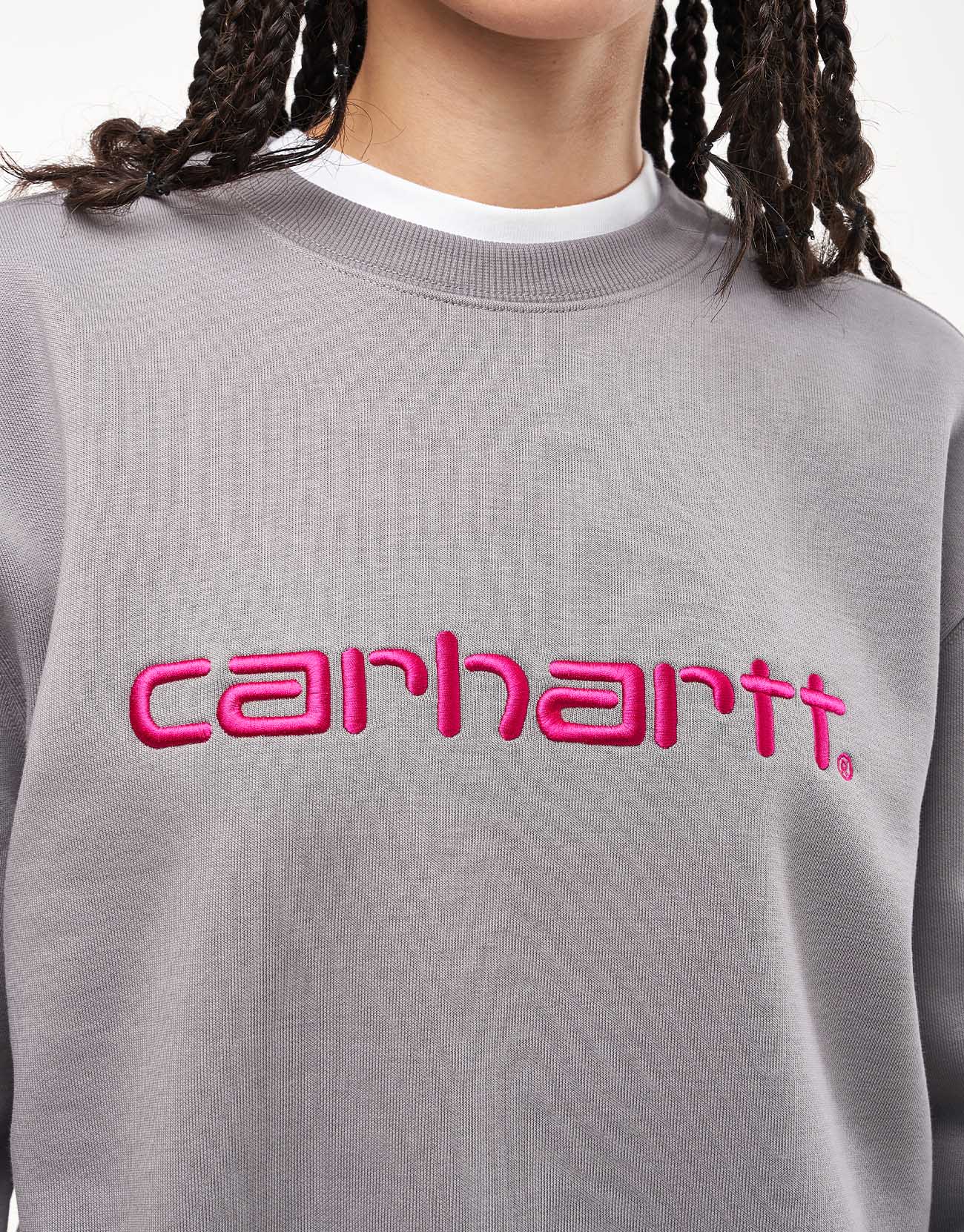 A brand that needs no introduction - presenting the Carhartt WIP Carhartt Sweatshirt in Yosemite/Disco. This stylish sweatshirt, made from a durable cotton blend, is designed in a relaxed fit and features embroidered scripting on the front chest. Ideal for everyday wear, this Carhartt sweatshirt is perfect for skater style enthusiasts and fit checks.