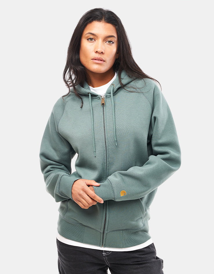 A brand that needs no introduction - presenting the Carhartt WIP Hooded Chase Jacket in Silver Pine/Gold. This stylish Carhartt sweat is composed of a durable cotton blend, styled in a relaxed fit with embroidered brand details. Perfect for everyday fits and ideal for skaters looking for comfort and style.