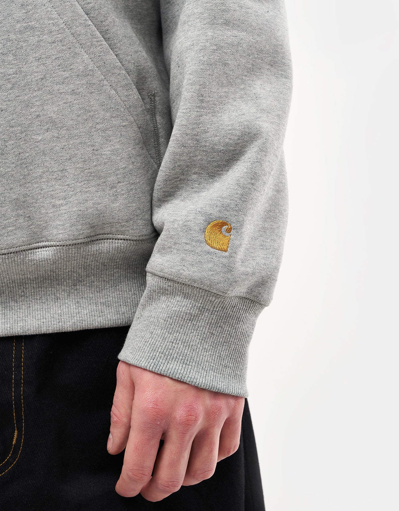 Carhartt WIP Hooded Chase Sweatshirt - Grey Heather/Gold