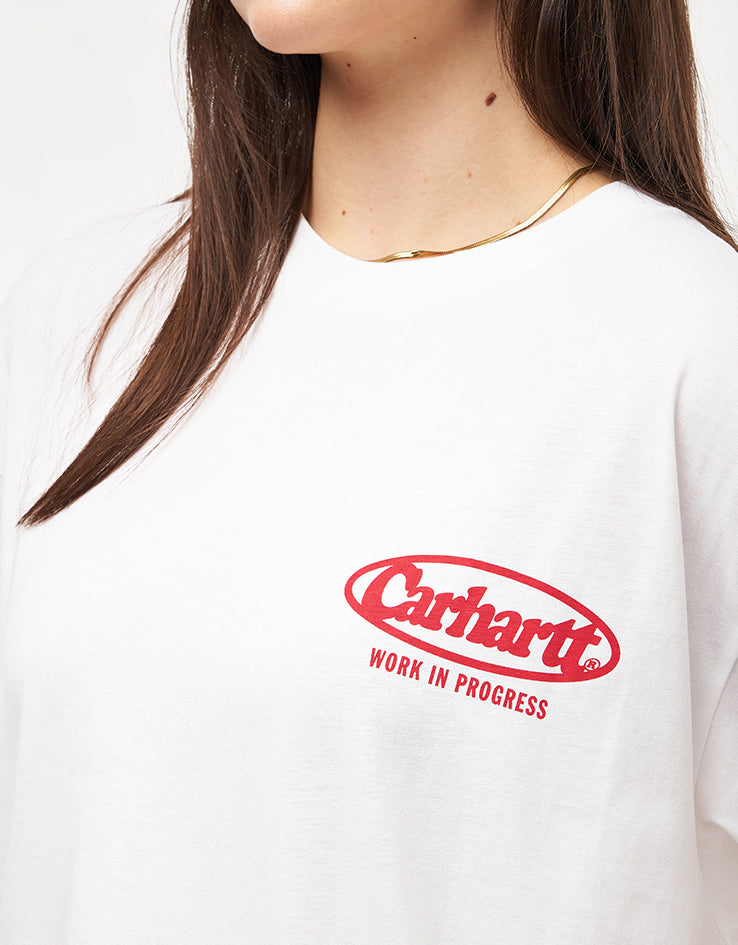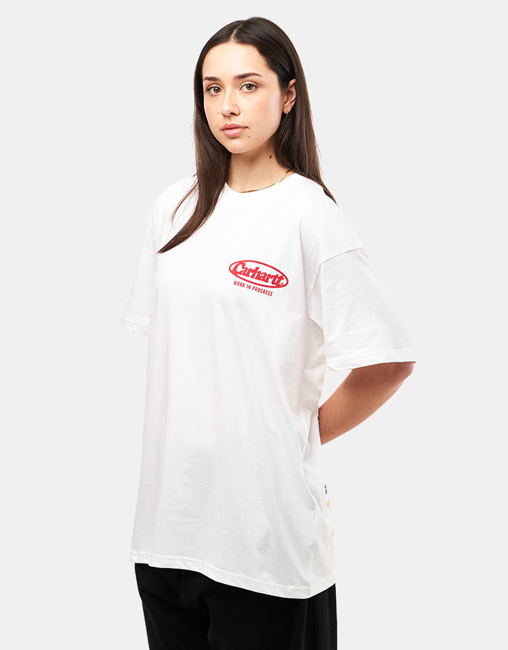 A brand that needs no introduction - presenting the Carhartt WIP Logo T-Shirt in White. This stylish Carhartt WIP t-shirt is composed of 100% cotton, styled in a relaxed fit with screen printed graphics on the front chest and back. Perfect for everyday fit checks, this t-shirt is a must-have for skater enthusiasts.