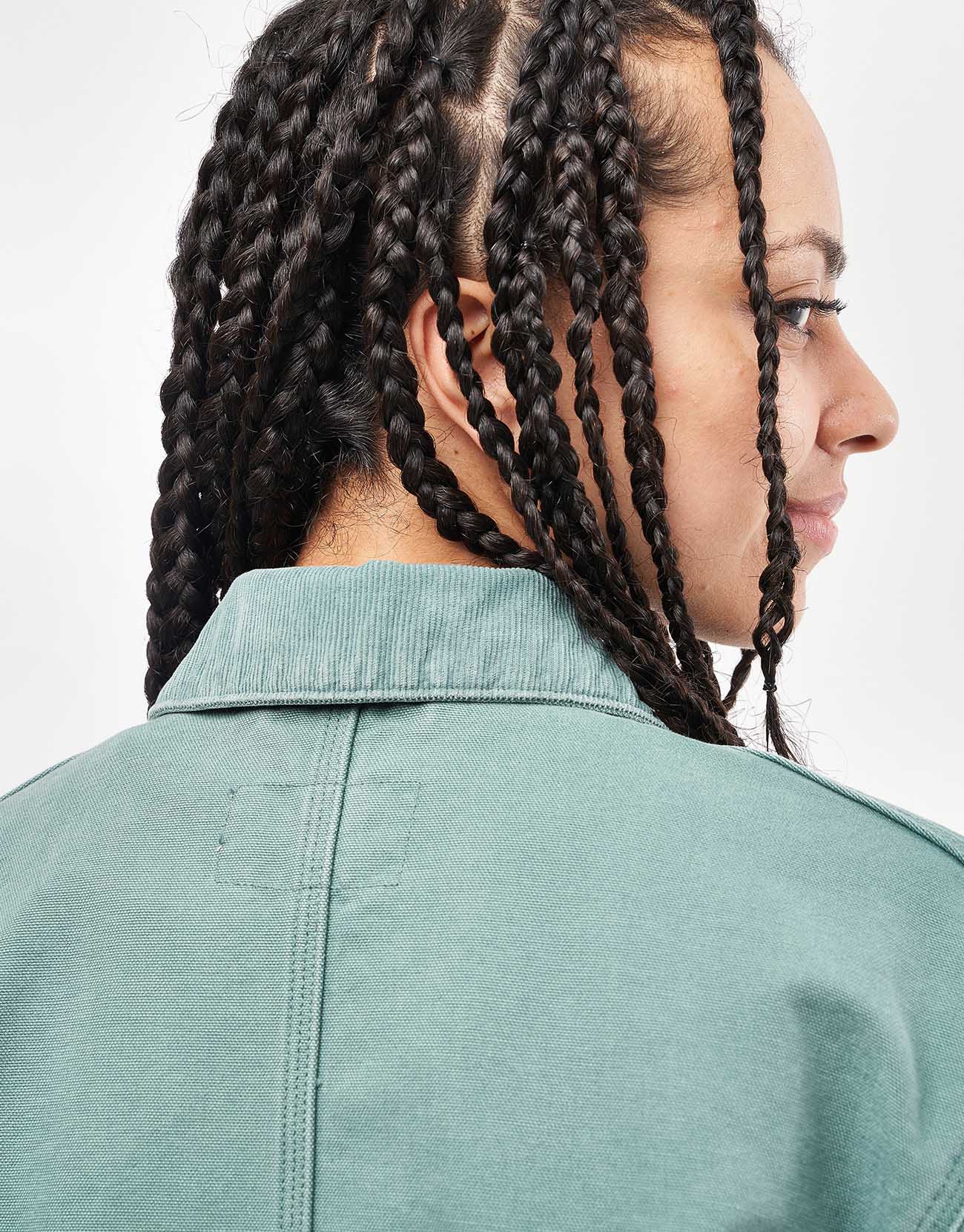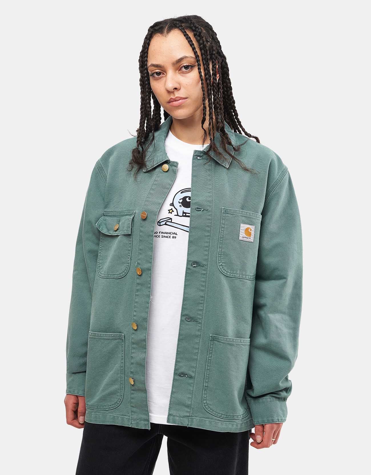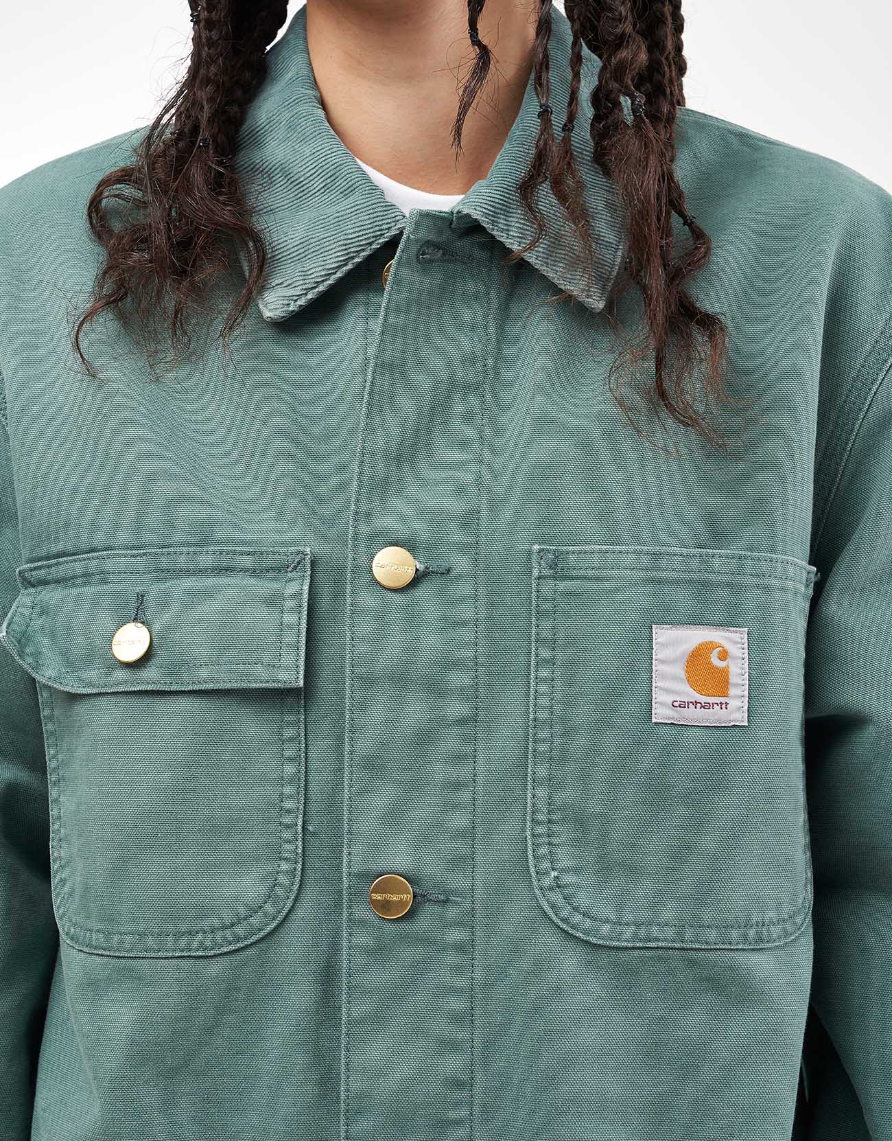 A brand that needs no introduction - presenting the Carhartt WIP Michigan Coat in Silver Pine/Silver Pine (Stone Canvas). This stylish Carhartt WIP jacket is composed of 100% organic cotton 'Dearborn' canvas, styled in a relaxed fit with a corduroy collar and button up closure, making it a perfect choice for skaters and fashion enthusiasts alike.