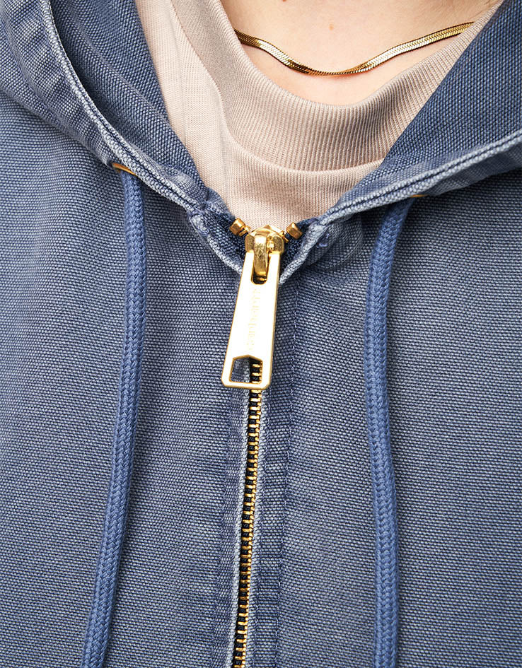 A jacket that needs no introduction - presenting the Carhartt WIP OG Active Jacket in Dusky Blue (Stone Canvas). This versatile Carhartt WIP jacket is composed of 100% organic cotton 'Dearborn' canvas, styled in a relaxed fit with a zip up closure and kangaroo pockets, making it perfect for everyday fits and pairing with baggy jeans.