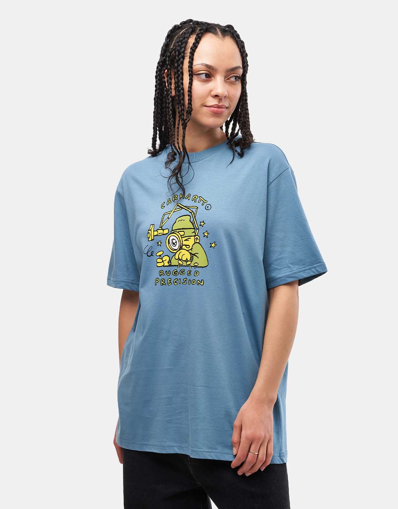Upgrade your wardrobe with the Carhartt WIP Precision Work T-Shirt in Clay Blue, an essential addition to any outfit. This Carhartt WIP t-shirt is composed of 100% cotton, styled in a relaxed fit, perfect for pairing with baggy jeans. Featuring screen printed graphics on the front chest and back, this skate t-shirt combines style and comfort effortlessly.