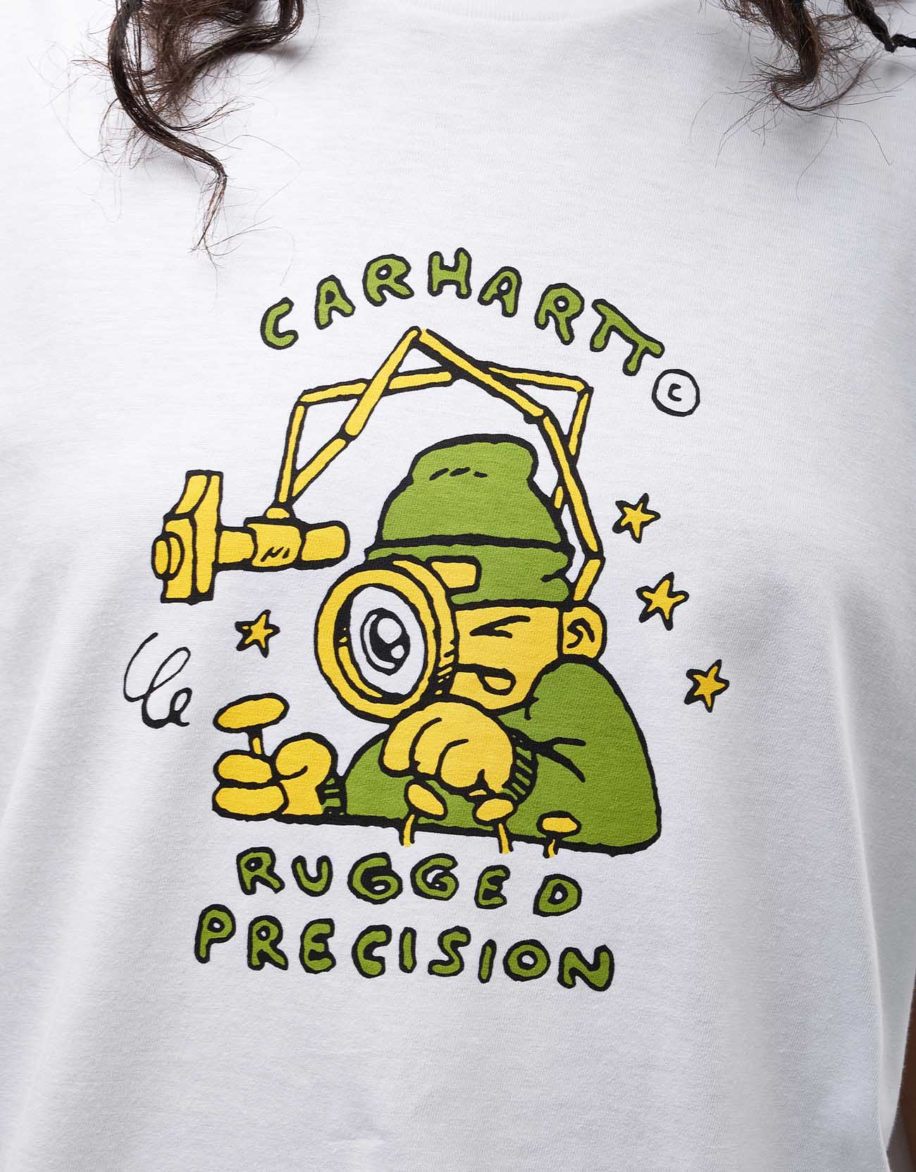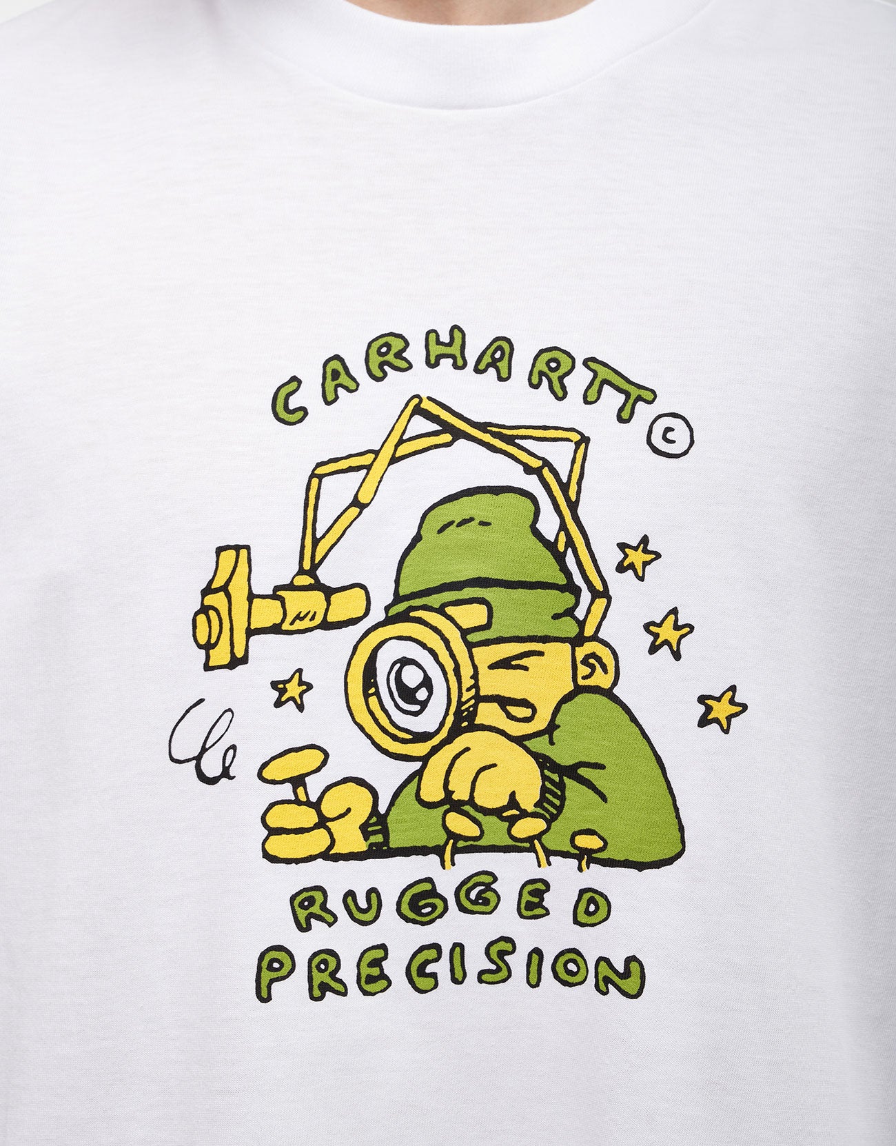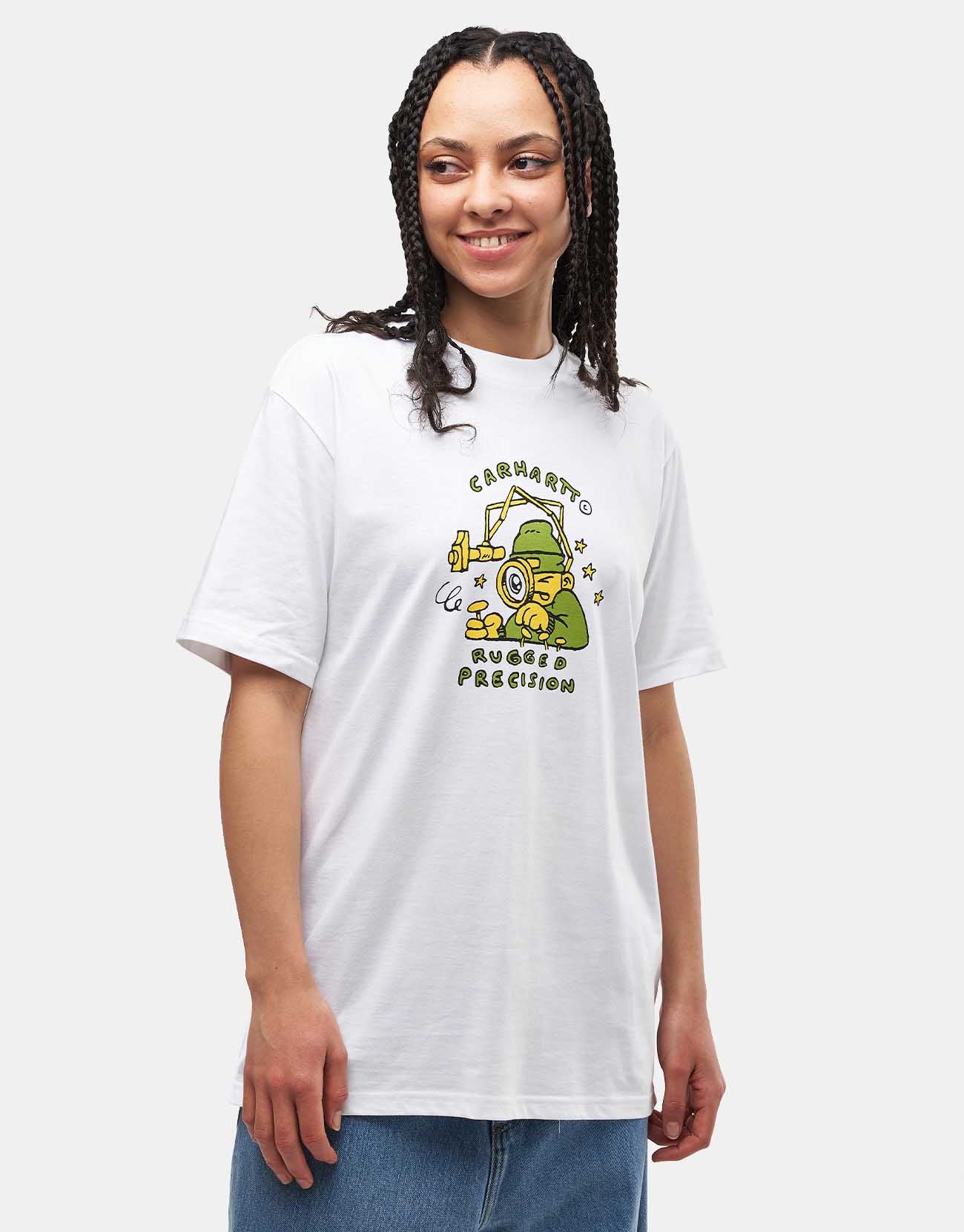 A brand that needs no introduction - presenting the Carhartt WIP Precision Work T-Shirt in White. This essential Carhartt WIP t-shirt is composed of 100% cotton, styled in a relaxed fit with screen printed graphics on the front chest. Perfect for everyday fits and a must-have in your collection of t-shirts, especially for skater enthusiasts.