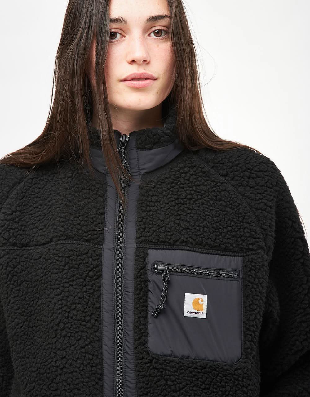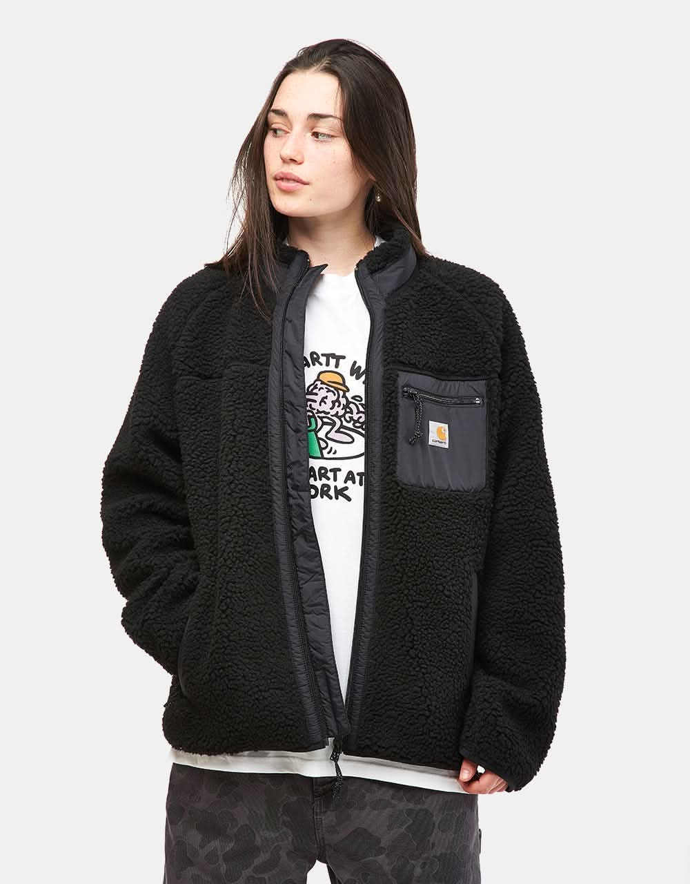 The Carhartt WIP Prentis Liner in Black/Black is a must-have fleece for skaters and style enthusiasts alike. Crafted from 100% polyester pile, this fleece features a mesh lining and nylon taffeta details, ensuring comfort and durability. With a full zipped front and stand-up collar, side hand pockets, and a chest pocket adorned with the classic Carhartt woven label, this piece is perfect for keeping cosy this season without compromising on style.