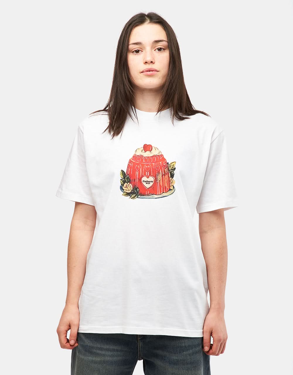 Upgrade your wardrobe with the Carhartt WIP Pudding T-Shirt in White, a must-have for any fan of Carhartt WIP t-shirts. This classic piece features iconic branding and is composed of 100% cotton, styled in a relaxed fit perfect for everyday wear. The screen printed graphics on the front chest add a unique touch, making it an ideal choice for skate t shirts enthusiasts.