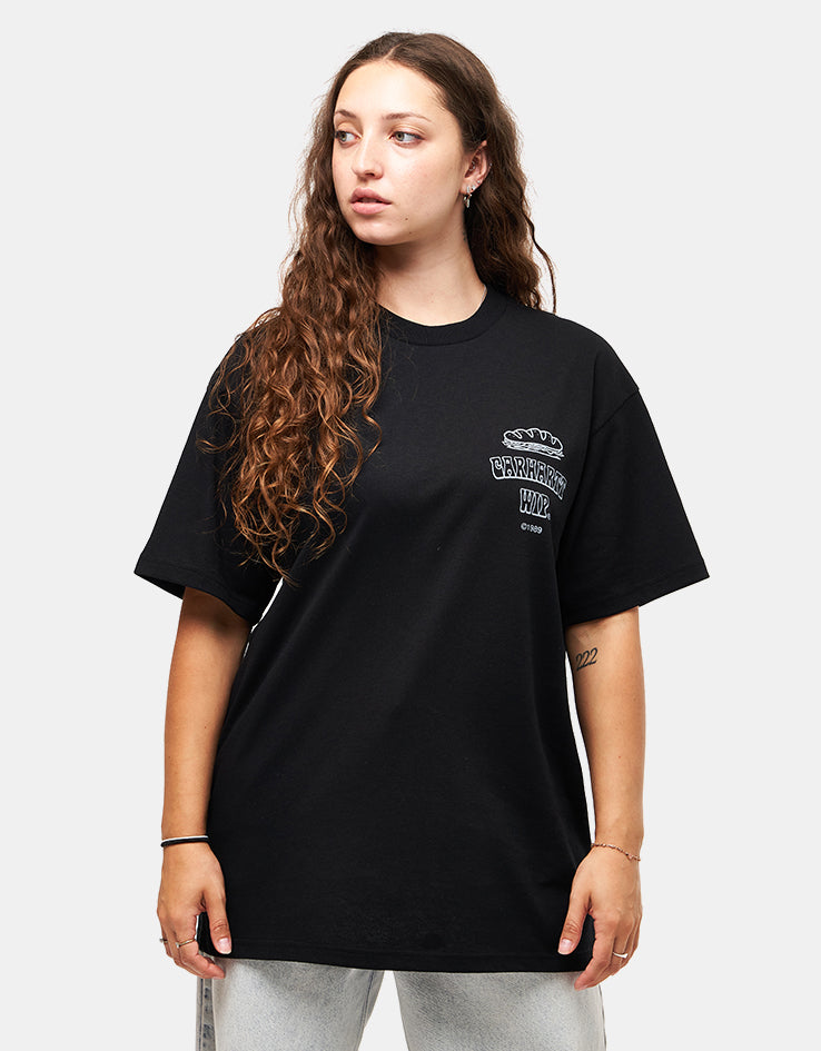 A brand that needs no introduction - presenting the Carhartt WIP Sandwich T-Shirt in Black. This stylish Carhartt WIP t-shirt is composed of 100% cotton, styled in a relaxed fit with screen printed details on the front chest and back. Perfect for everyday fit checks, this skate t-shirt is a must-have for any skater's wardrobe.