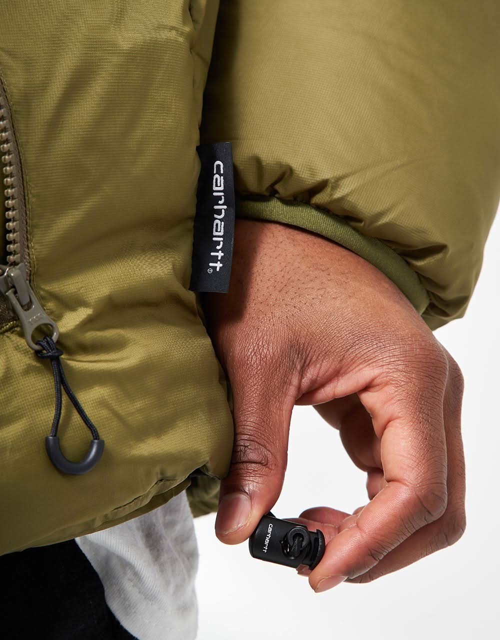 Upgrade your outerwear with the Carhartt WIP Toronto Jacket in Capulet/Duck Blue, a durable addition to winter outfits. This Carhartt WIP jacket, composed of 100% polyester and padded with artificial down, is built for braving the cold. Featuring a full zip closure, adjustable band and hood, and water repellant action, this jacket is perfect for skaters and outdoor enthusiasts alike.