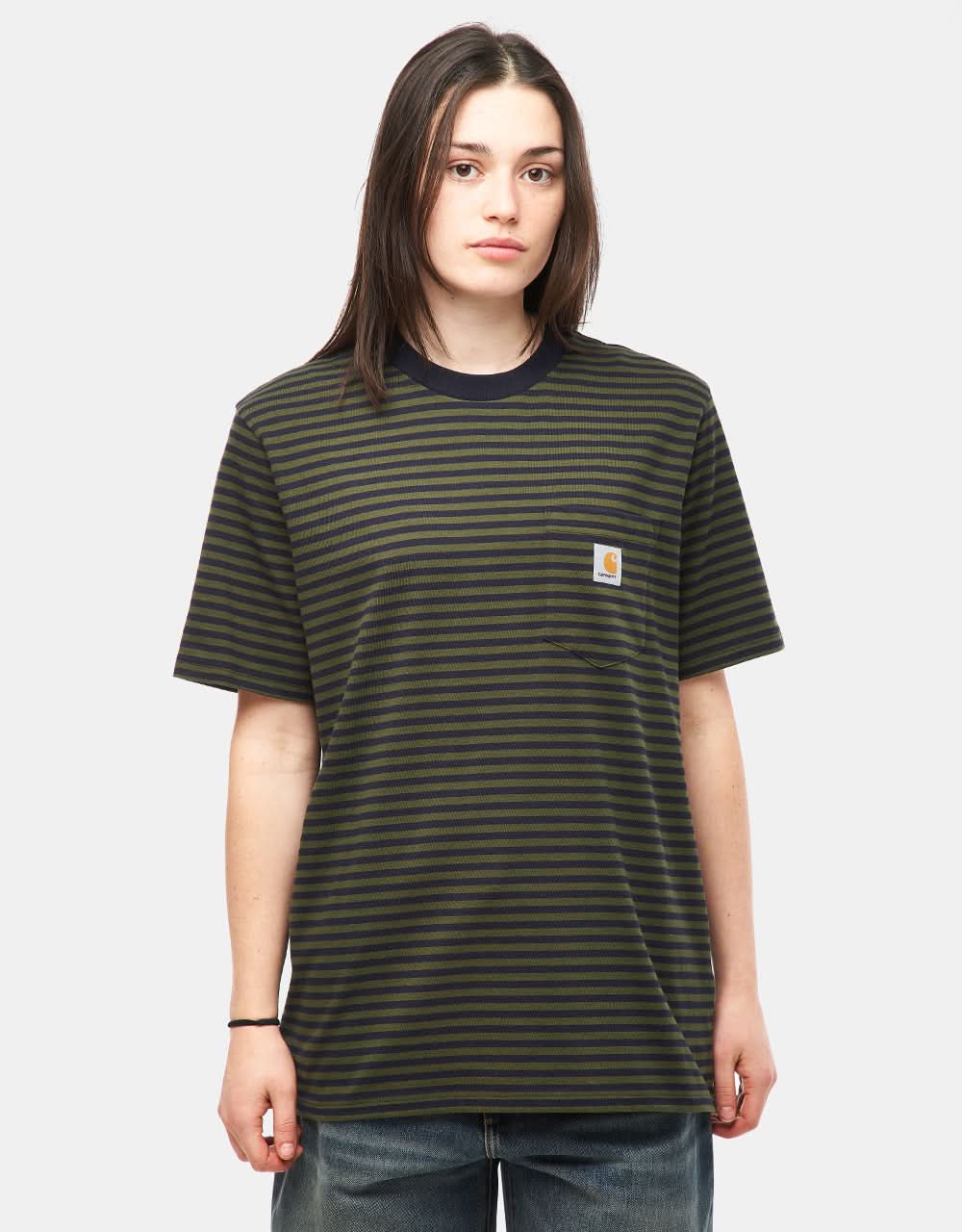 Carhartt WIP Verner Pocket T-Shirt - Verner Stripe/Dark Navy/Office Green