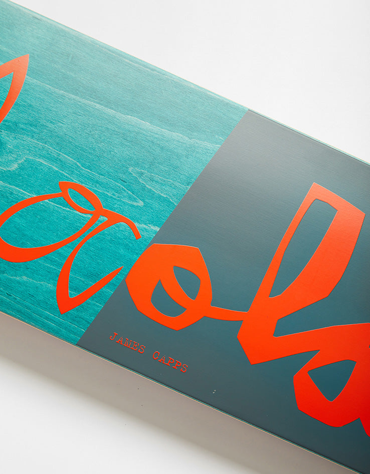 The Chocolate Capps Scrunk G018 Skateboard Deck comes in at 8" wide and is a pro model for James Capps. The deck blends together the OG Script and Chocolate chunk logos on top of a half ink and half veneer background.