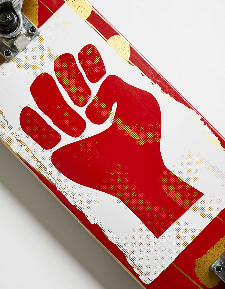 The Cliché Viva Cliché RG Complete Skateboard comes set up and ready to skate so you waste no time getting rolling. The 7.75" deck featuring Cliché's classic branding on a red background covered by a protesting fist comes fully equipped with Tensor Raw Trucks and Cliché wheels, making it an ideal board for those just starting out or someone looking to upgrade their current setup.