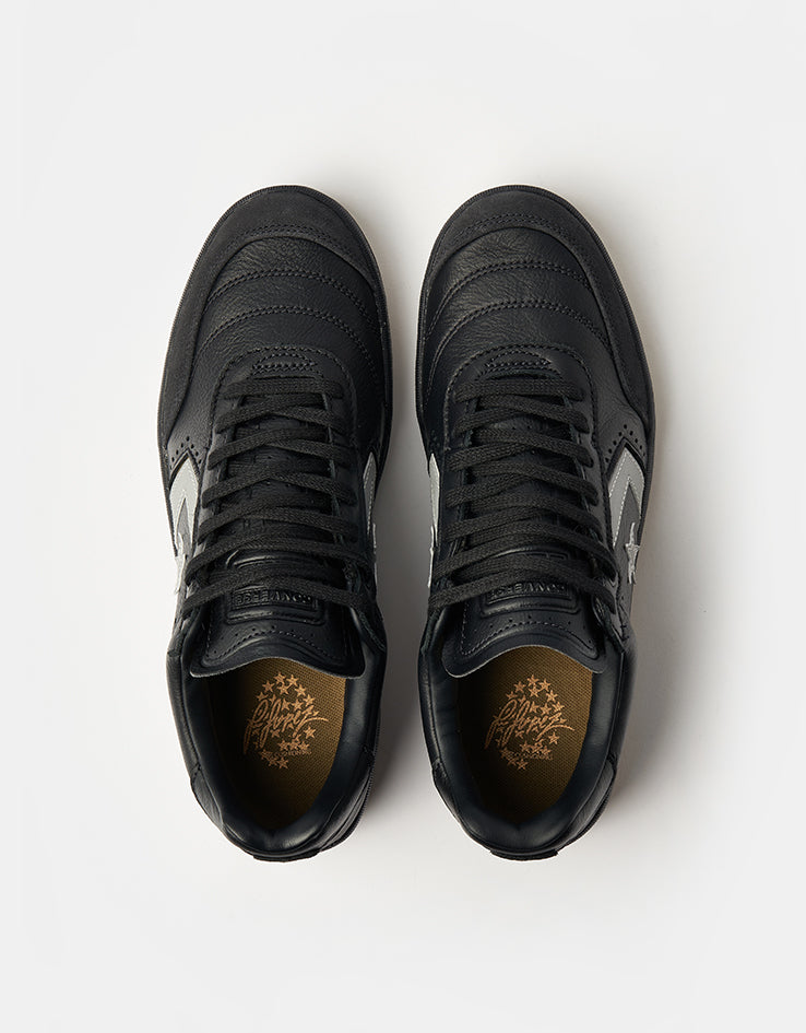 Taking influence from all over the Converse archives, the Louie Lopez Pro 2 is built from scratch and loaded with all the usual CONS tech. Meanwhile the silhouette creates a custom look with quilted toe stitching, and made versatile with a Black/Lava leather colourway and a custom tread pattern designed by the man himself, with influences from the classic Chuck Taylor.
