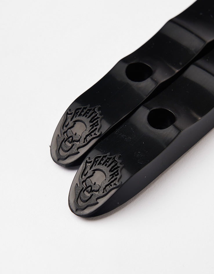 The Bonesaw rails from Creature are fun deck rails, designed to help you slide further and more consistently in the centre of the deck. As well as this, rails make it possible to do combinations of board to truck tricks not possible or that are much harder without them. The Bonesaw rails from Creature feature a saw pattern cut in to the top of the rail for a cool, choppy effect.