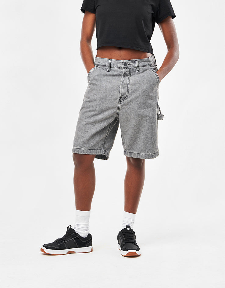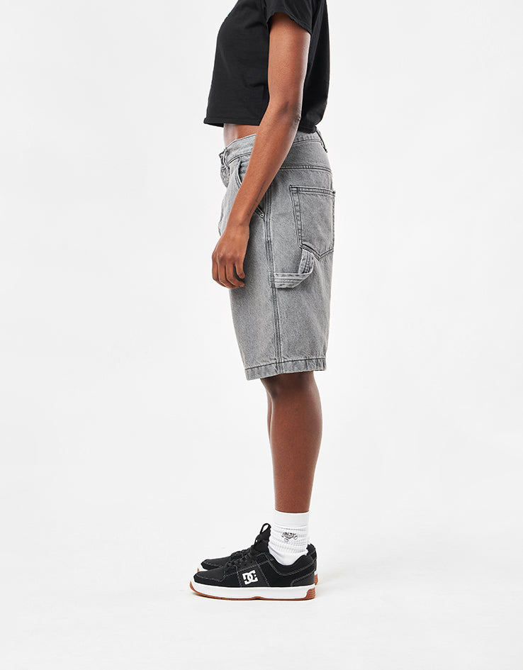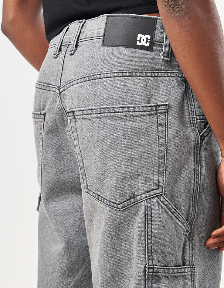 Upgrade your wardrobe with the DC Carpenter Baggy Short in Medium Grey, featuring classic branding from this iconic brand. Composed of 100% cotton, styled in a baggy fit with carpenter details.