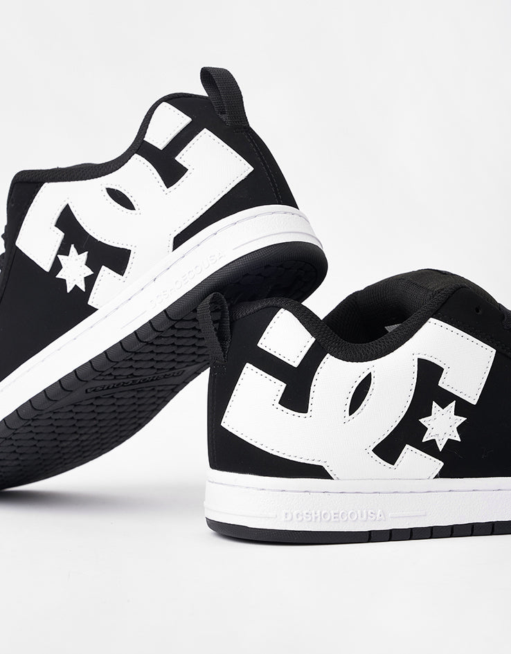 DC taking it way back to the beginning with some good old chunky skate shoes. The DC Court Graffik Skate Shoes in a Black and White colourway feature a super padded foam collar and tongue, a cupsole construction, vent holes, a lightweight mesh tongue and finished with DC's trademark Pill Pattern tread.