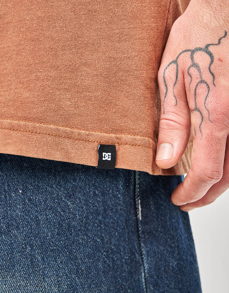 Upgrade your wardrobe with the DC Parts T-Shirt in Toffee, an essential skate addition to any outfit. Composed of 100% cotton, styled in a relaxed fit with screen printed graphics on the front chest and back.