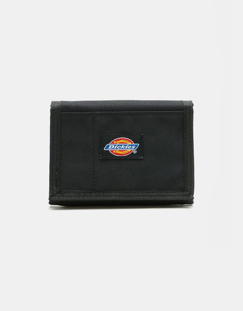 The Dickies Kentwood Wallet in Black is a tri-fold wallet comes with a woven branding label on the front, multiple card slots, a cash slip, a zippered coin pocket and an ID window. Complete with a stash pocket at the rear.
