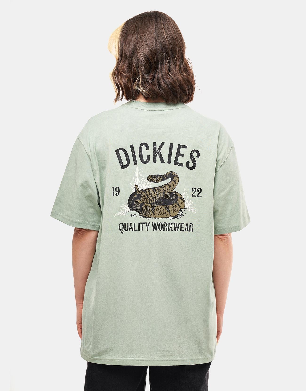 Upgrade your wardrobe with the Dickies Snake T-Shirt in Iceberg Green, an essential addition to everyday outfits. Composed of 100% cotton, styled in a relaxed fit with screen printed graphics on the front chest and back.