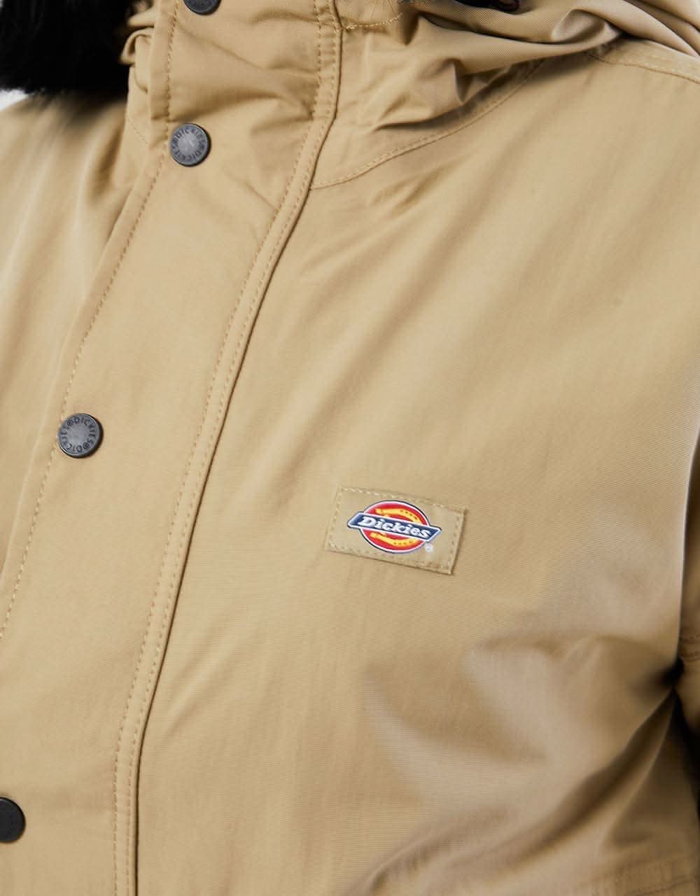 The Dickies Women's Glacier View Jacket in Khaki is a functional jacket designed for outdoor activities and casual wear. The jacket is made of a durable and water-resistant nylon material that provides protection from the elements, while also being breathable and comfortable to wear.