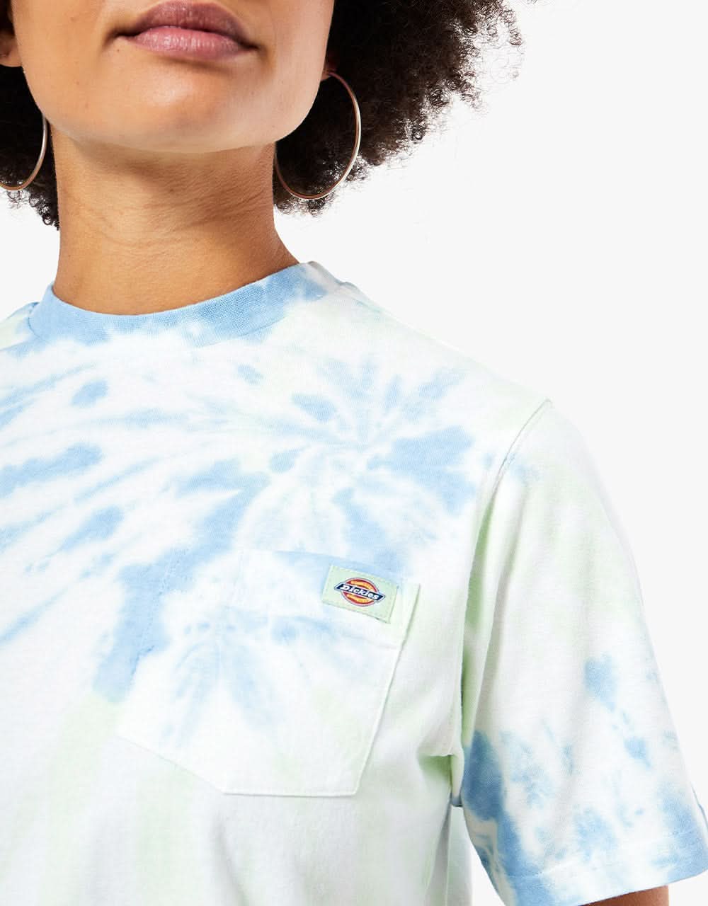 The Dickies Women's Seatac T-Shirt in Celadon Green comes in Dickies latest spring womenswear drop to freshen up your wardrobe. Made from 100% jersey cotton, this tee comes in a summer-ready tie-dye design and features a small patch pocket and a dickies logo.