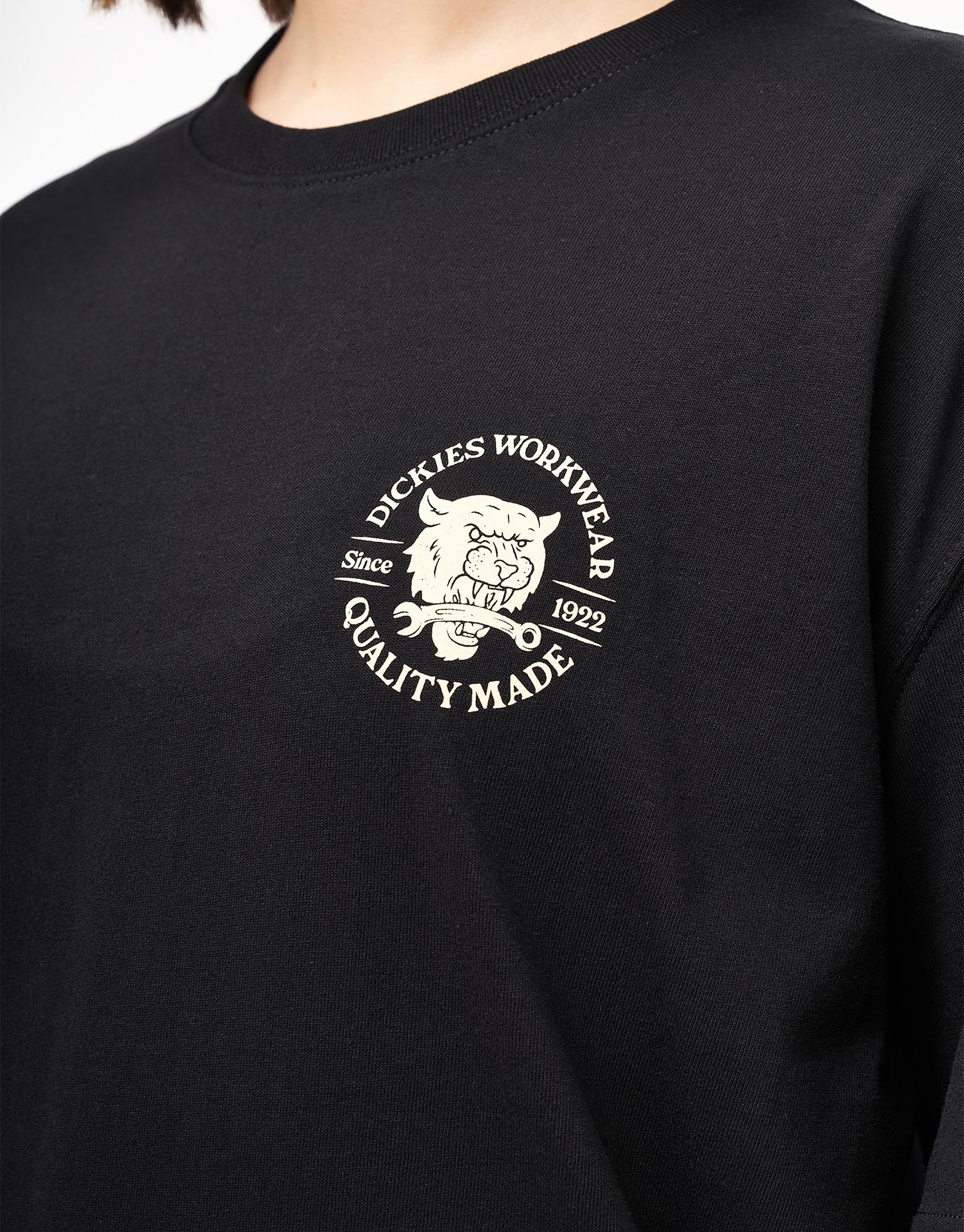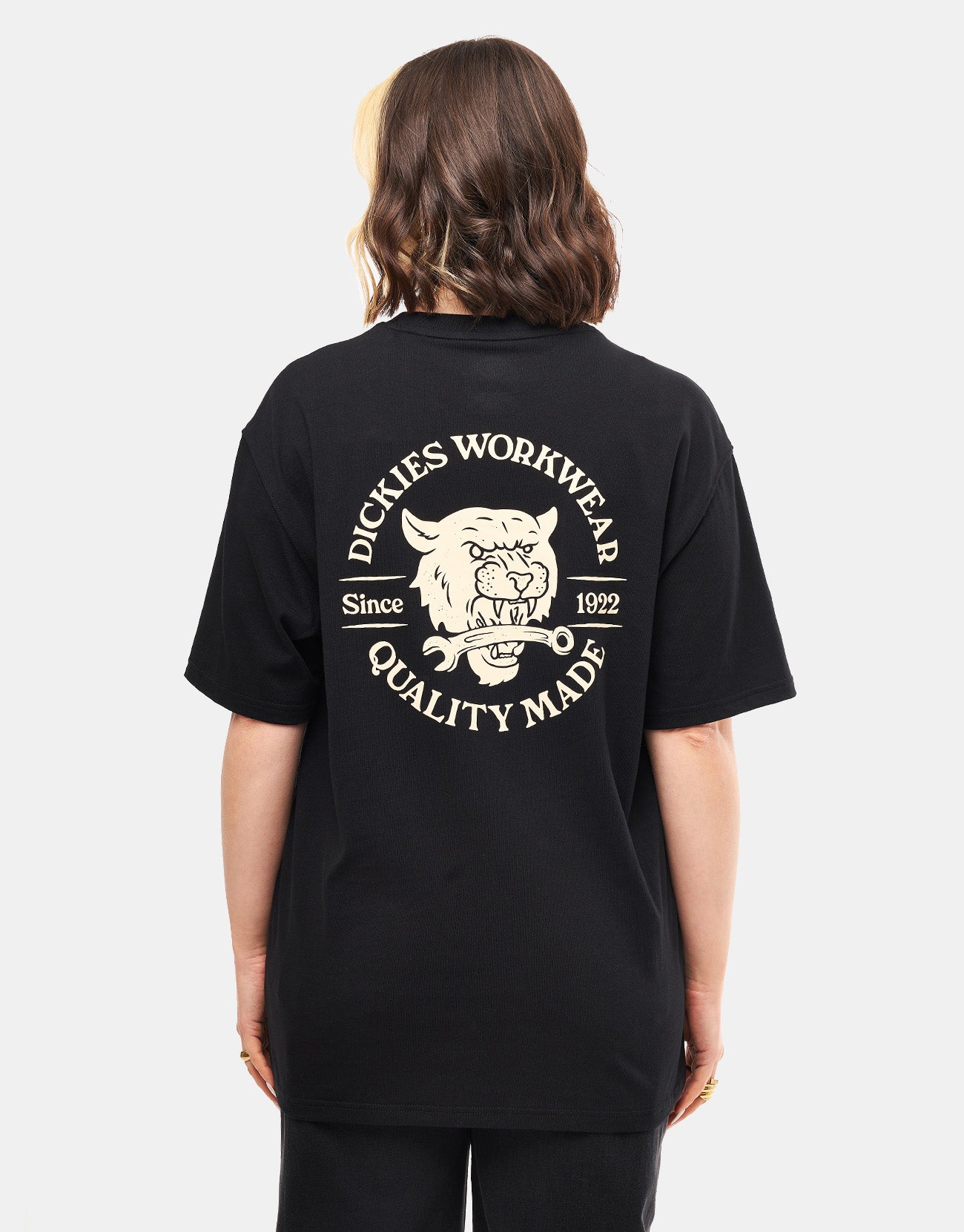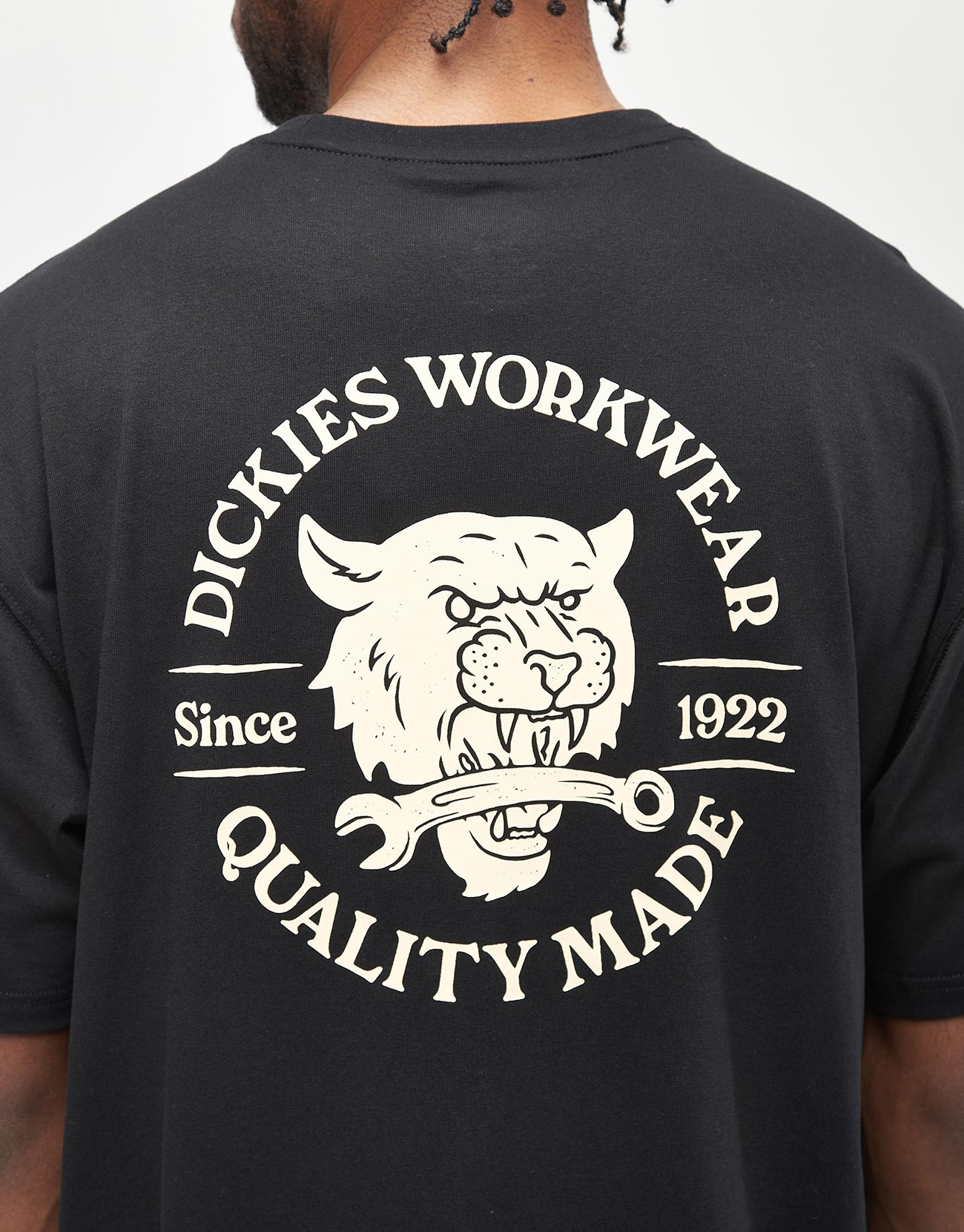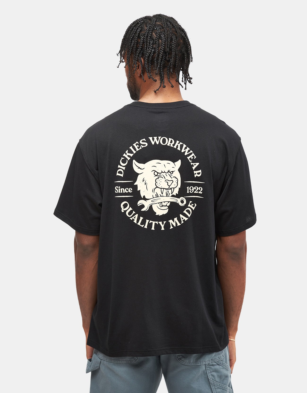 Upgrade your wardrobe with the Dickies Wrench T-Shirt in Black, an essential addition to everyday outfits. Composed of 100% cotton, styled in a relaxed fit with screen printed graphics on the front chest and back.