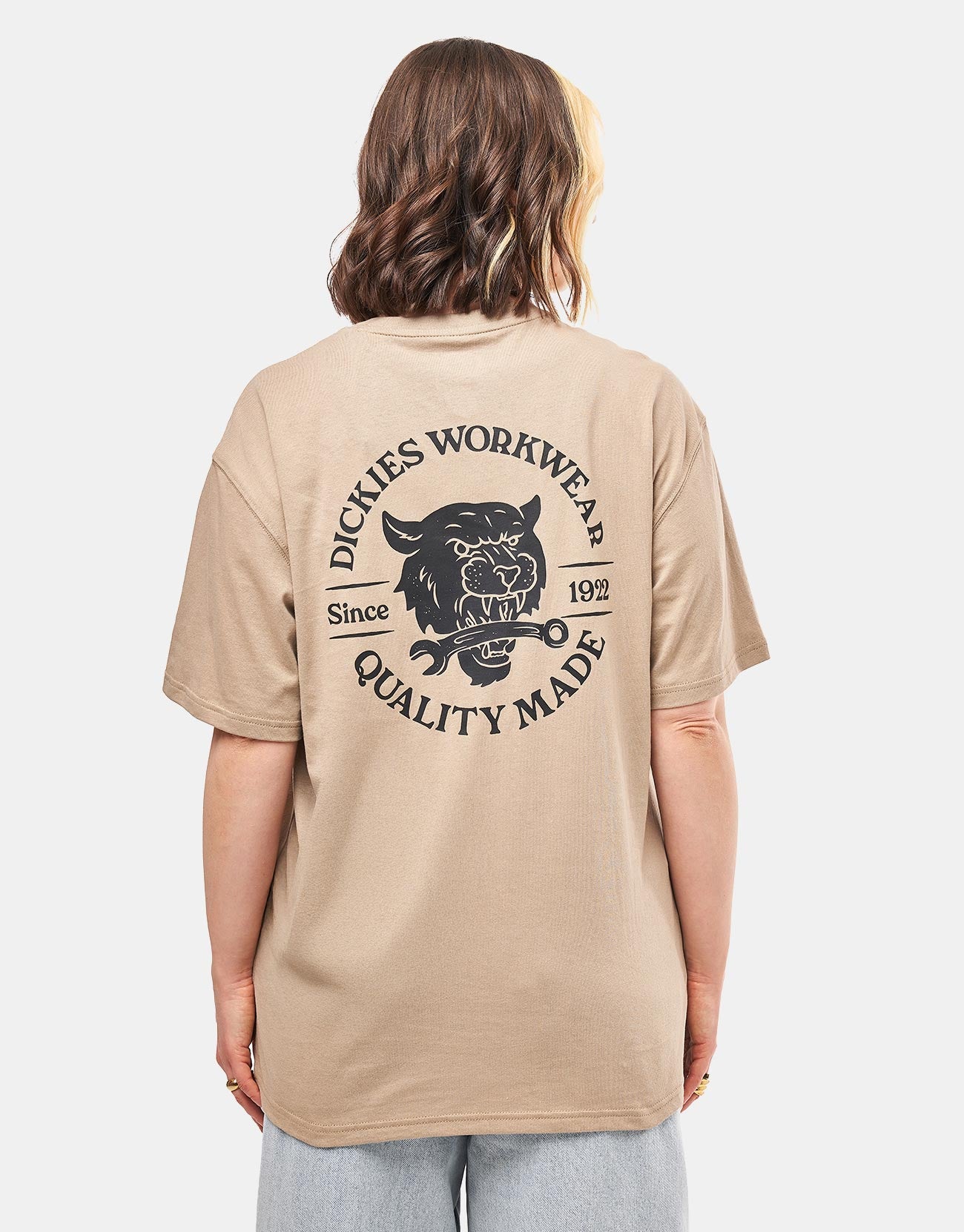 Upgrade your wardrobe with the Dickies Wrench T-Shirt in Desert Sand, an essential addition to everyday outfits. Composed of 100% cotton, styled in a relaxed fit with screen printed graphics on the front chest and back.
