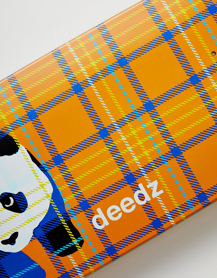 The Enjoi Deedz Plaid Panda Super Sap R7 Skateboard Deck is a pro model for Didrik Galasso coming in at 8.375" wide. The deck features the classic Enjoi branding with an orange plaid background.