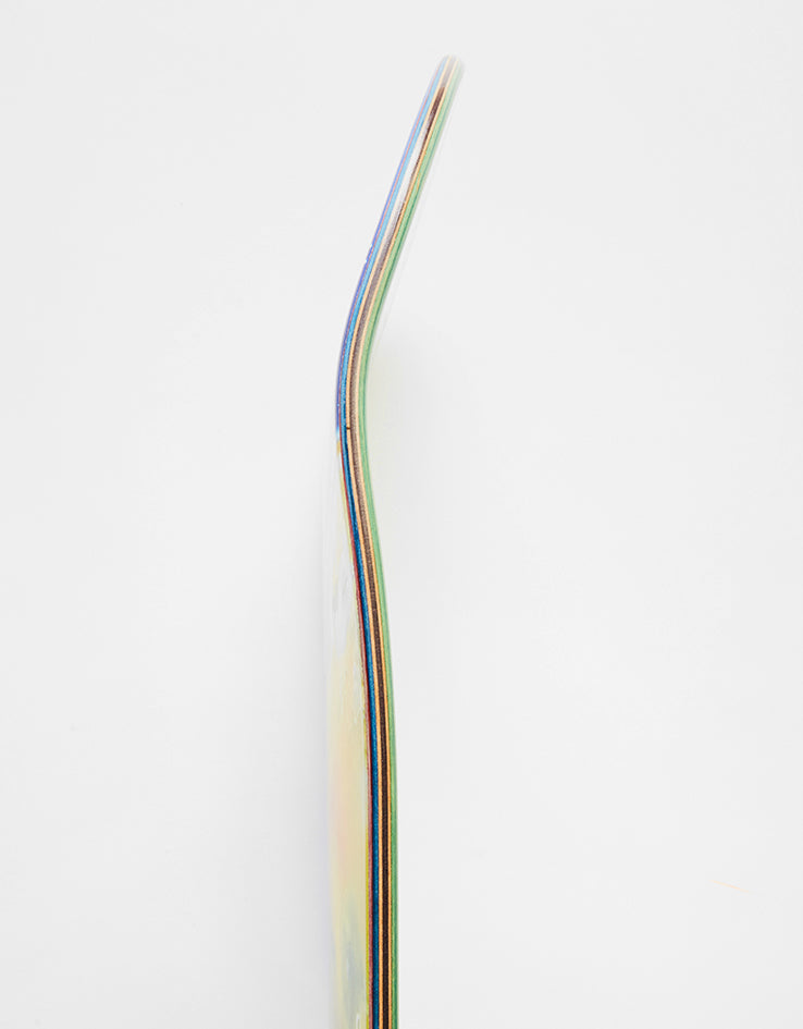 Enjoi bring their typically lighthearted designs to Michael Pulizzi's Cosmos Peekaboo Super Sap R7 pro board. The deck takes Enjoi's iconic panda and shoots it into orbit to be one with the stars. Pulizzi's name is printed underneath the panda. The deck is a standard popsicle that has a low concave with steep kicks. The Super Sap resin used in construction uses recycled and renewable raw materials.